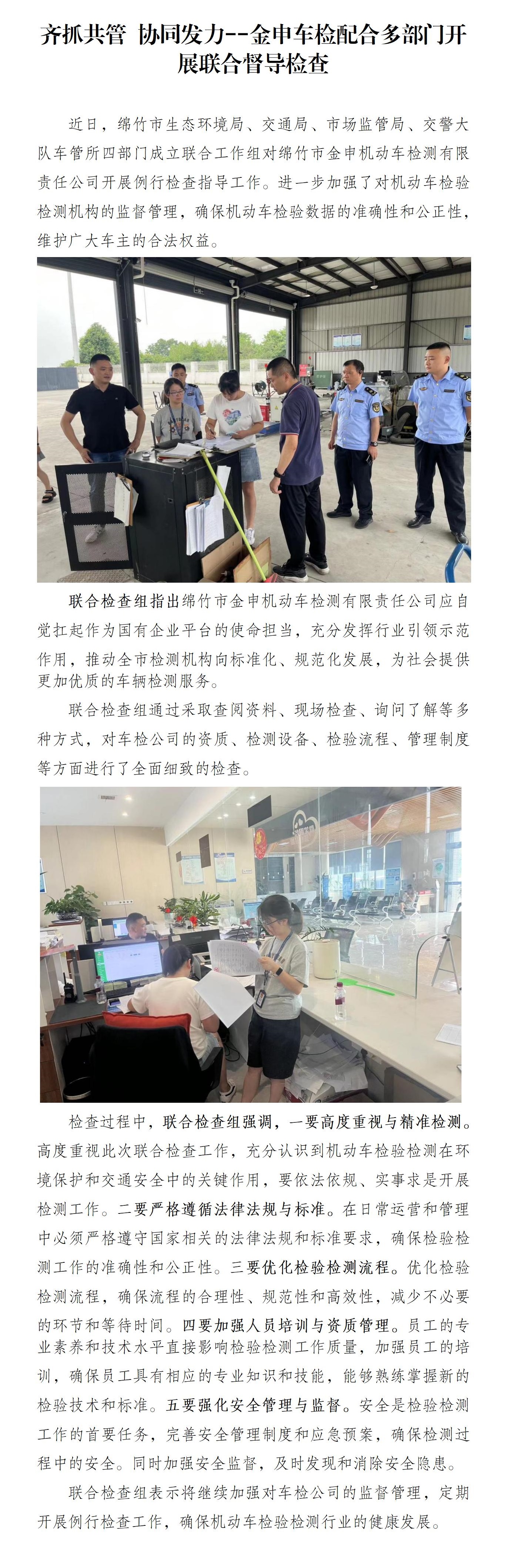 齊抓共管 協(xié)同發(fā)力--金申車(chē)檢配合多部門(mén)開(kāi)展聯(lián)合督導檢查