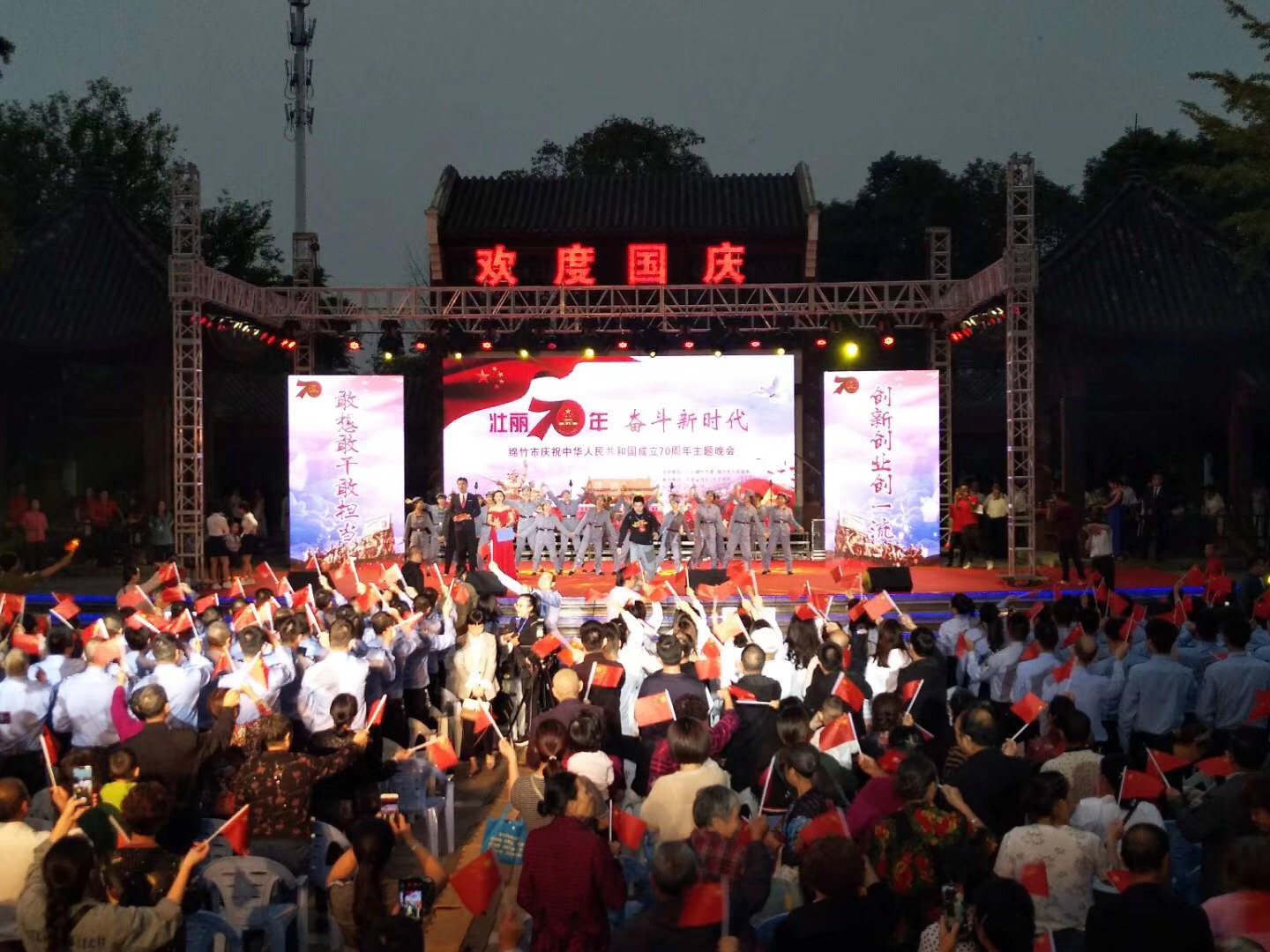 9月25日晚,由中共綿竹市委、綿竹市人民政府主辦,市委宣傳部、市文旅局承辦的“壯麗70年,奮斗新時(shí)代”慶祝中華人民共和國成立70周年主題晚會(huì )在市人民公園楊銳廣場(chǎng)隆重舉行。當晚,舞臺上流光溢彩,絢麗多姿;舞臺下歡聲笑語(yǔ),掌聲陣陣。整臺演出由“光輝歲月”、“幸福家園”、“輝煌未來(lái)”三個(gè)篇章組成。