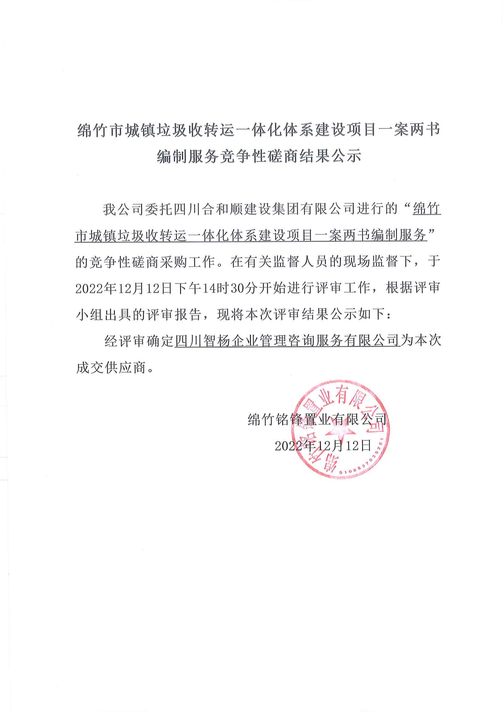 城鎮垃圾收轉運一體化體系建設項目編制服務(wù)招標結果公示