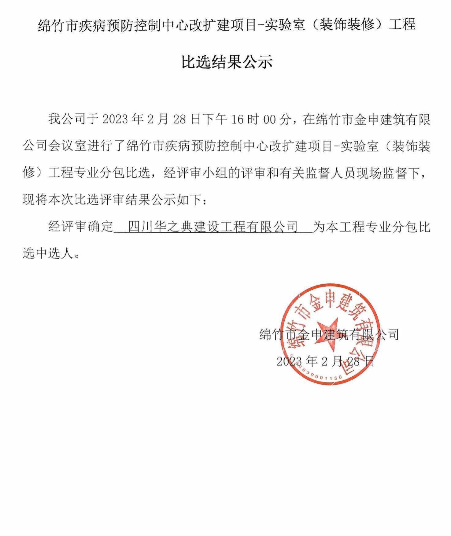 綿竹疾病預防中心改擴建項目(實(shí)驗室)工程比選結果公示