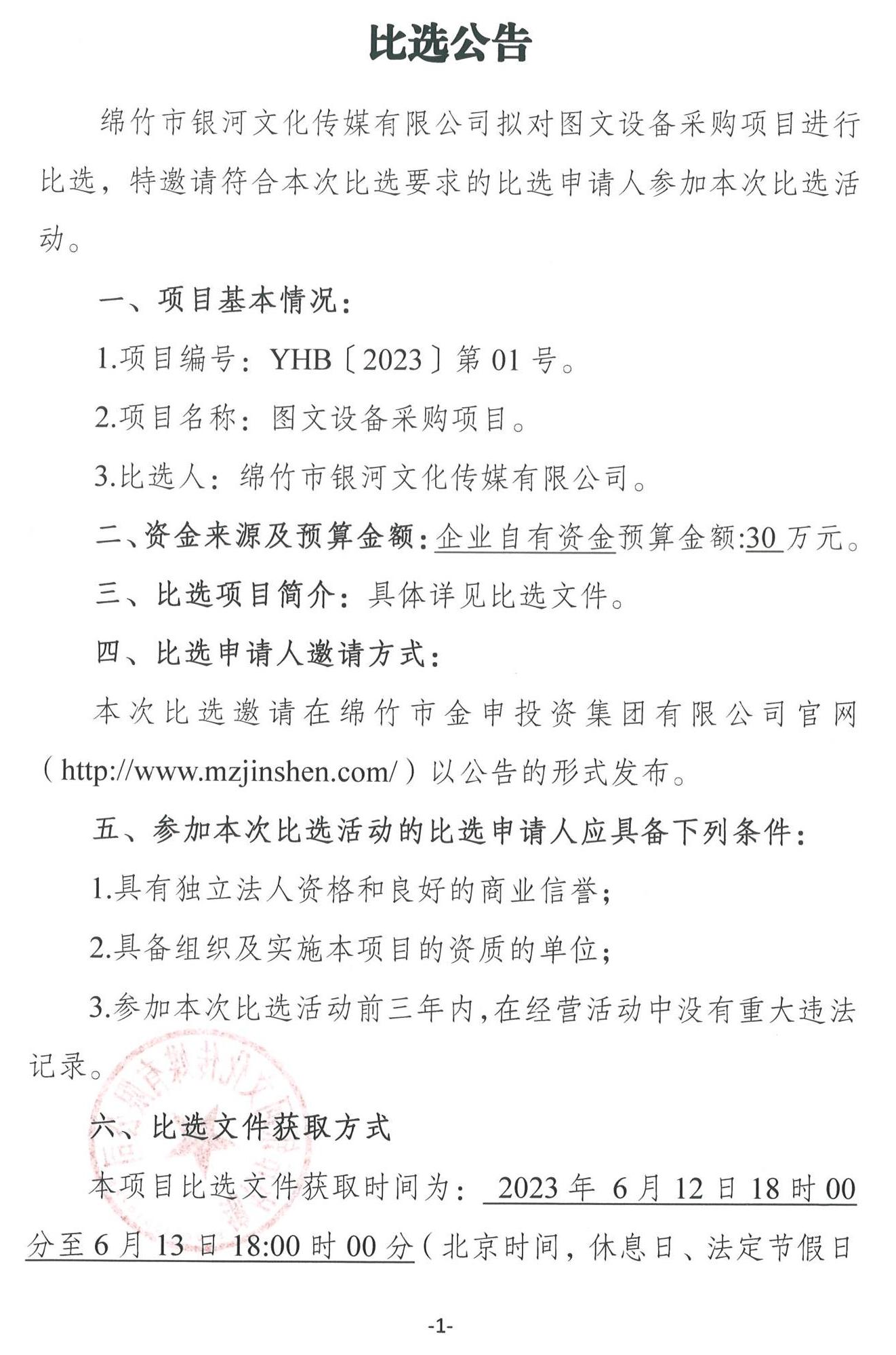 綿竹市銀河文化傳媒有限公司圖文設備采購項目比選公告