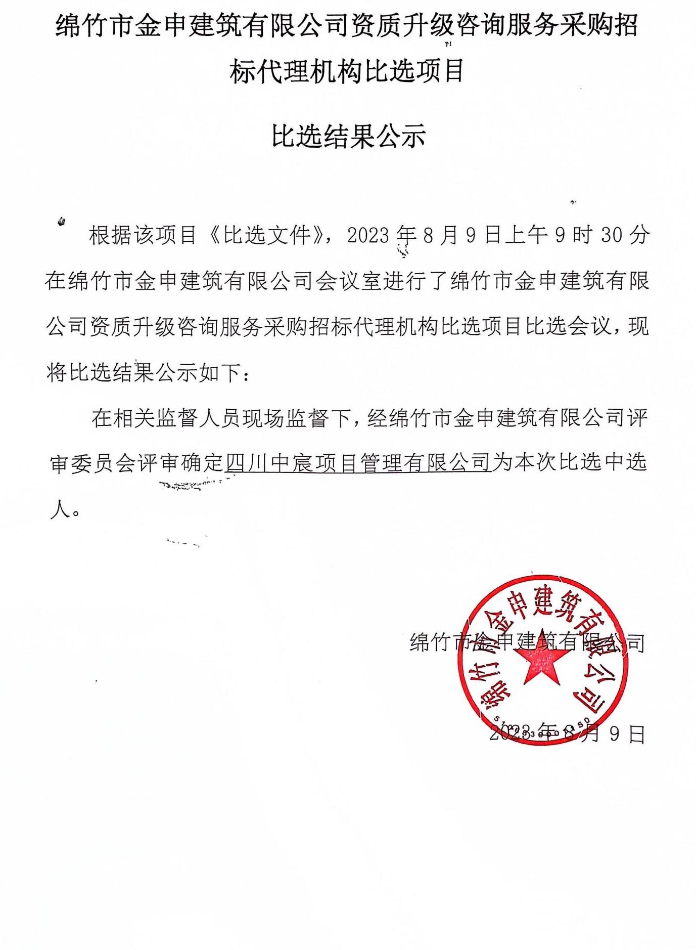 金申建筑有限公司資質(zhì)升級咨詢(xún)服務(wù)采購招標代理結果公示