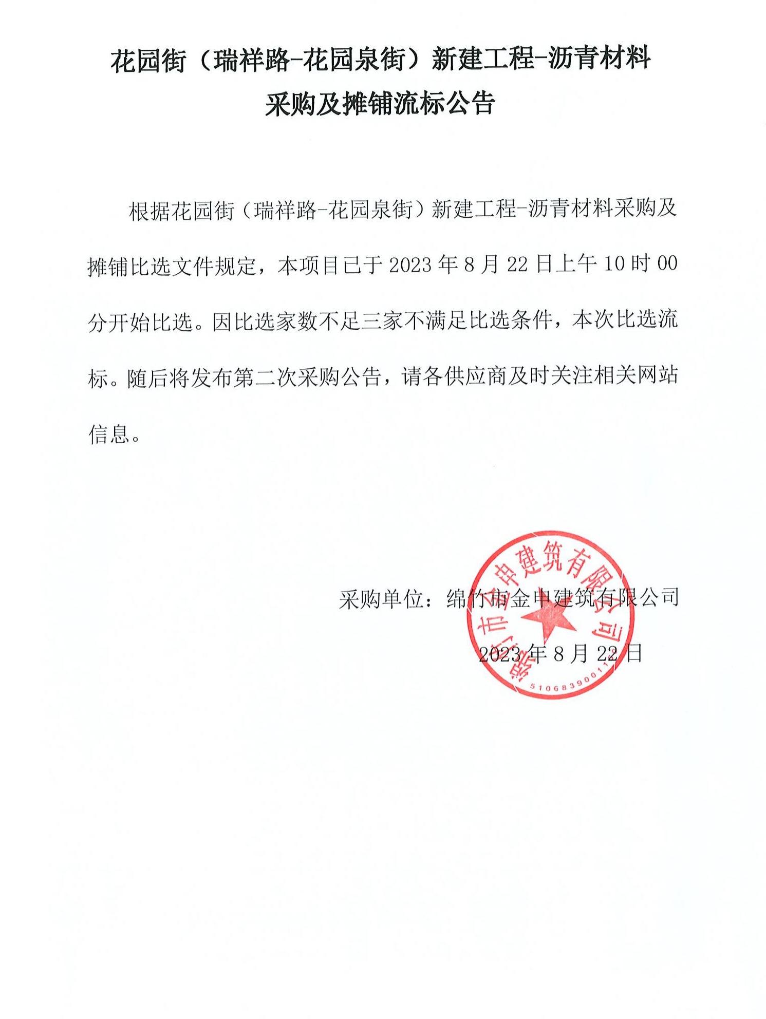 花園街(瑞祥路-花園泉街)工程瀝青材料及攤鋪流標公告