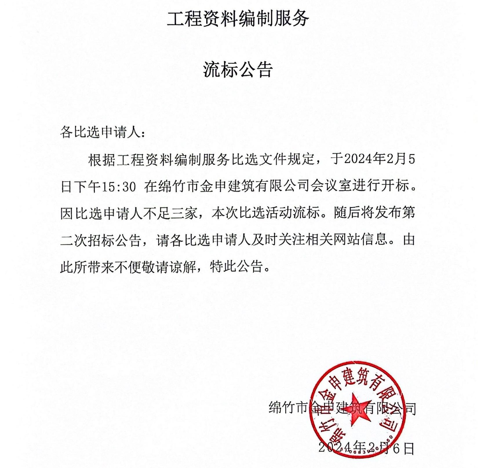 工程資料編制服務(wù)比選流標公告
