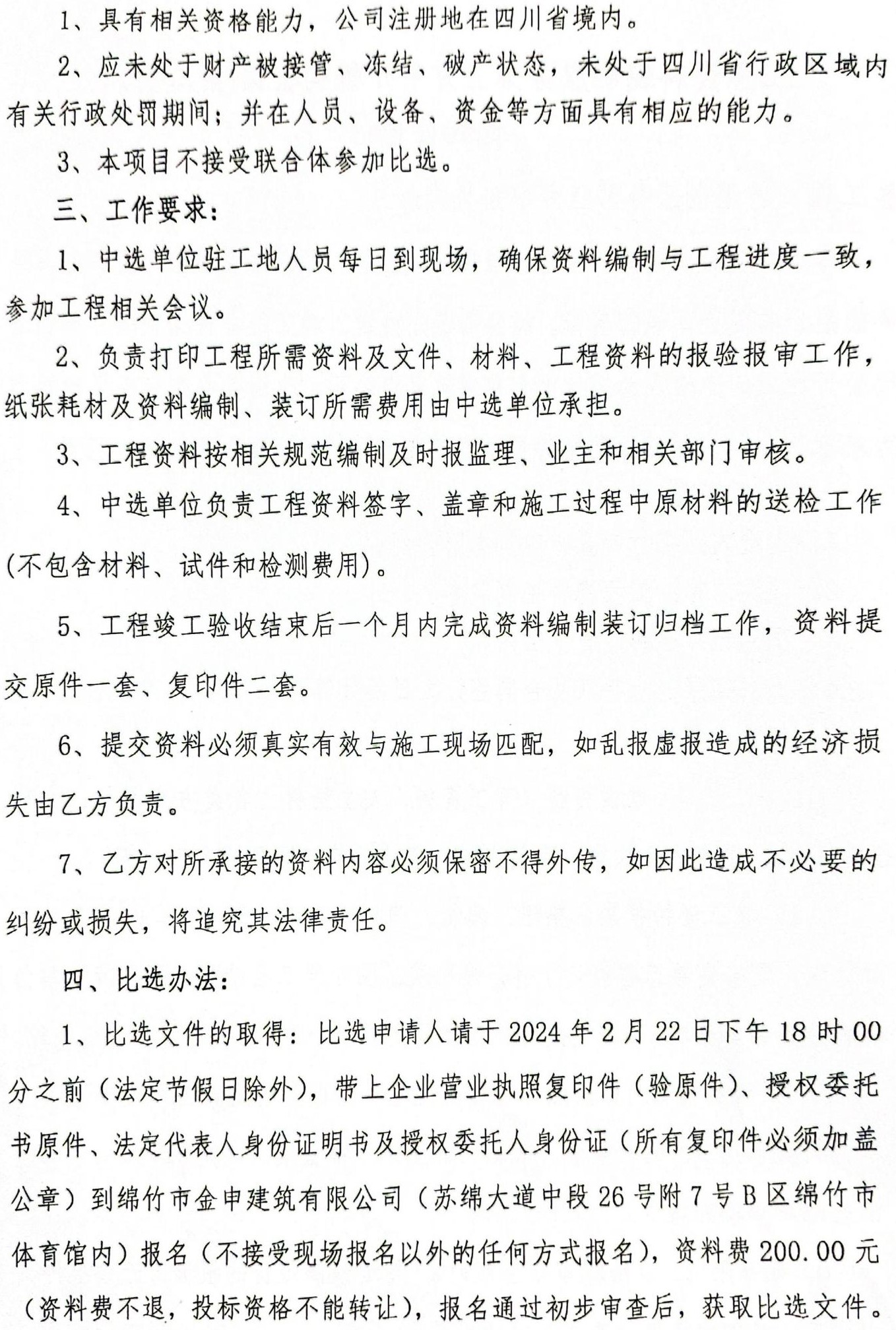 工程資料編制服務(wù)第三方中介機構征集(第二次)比選公告