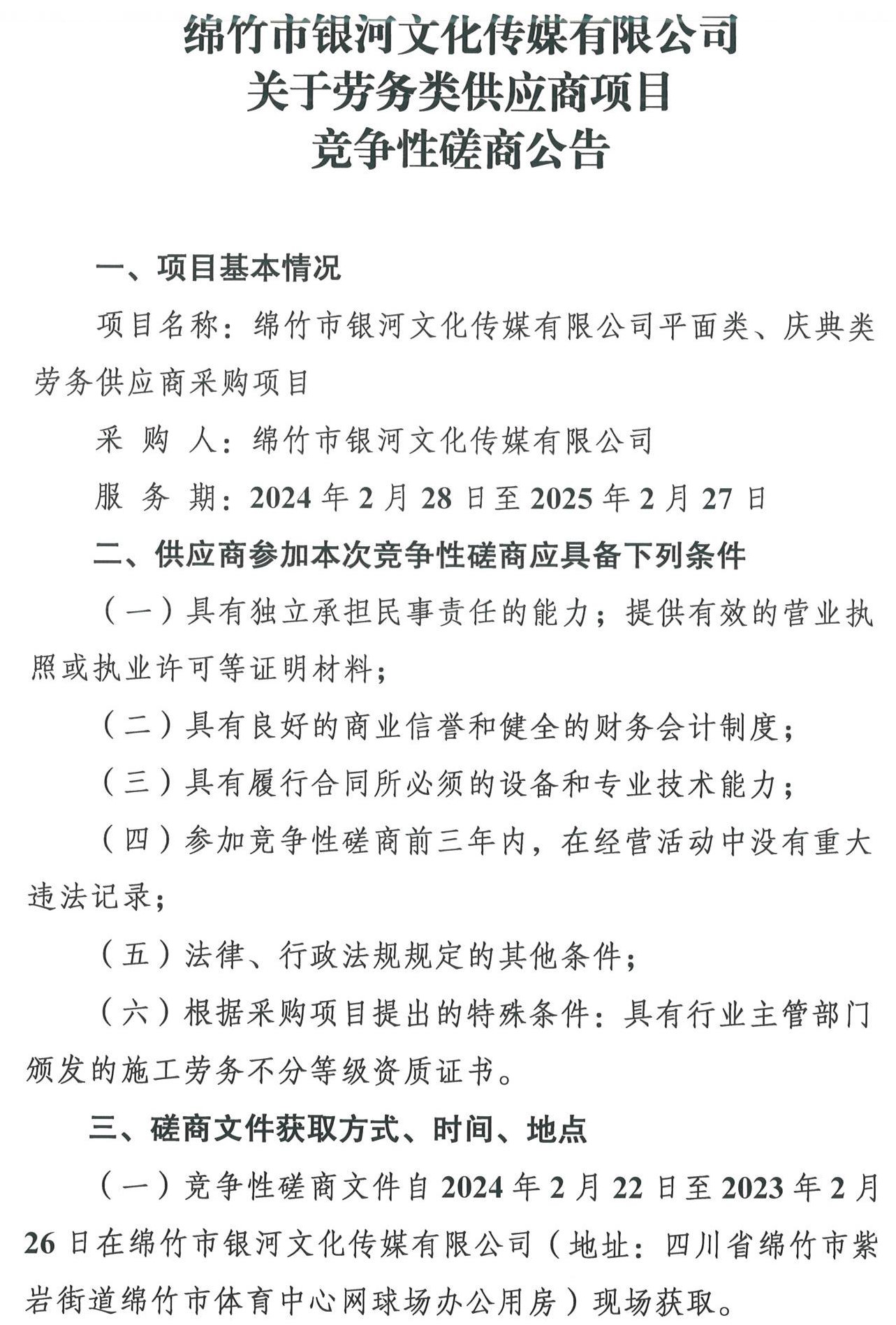 銀河傳媒勞務(wù)類(lèi)供應商項目競爭性磋商公告