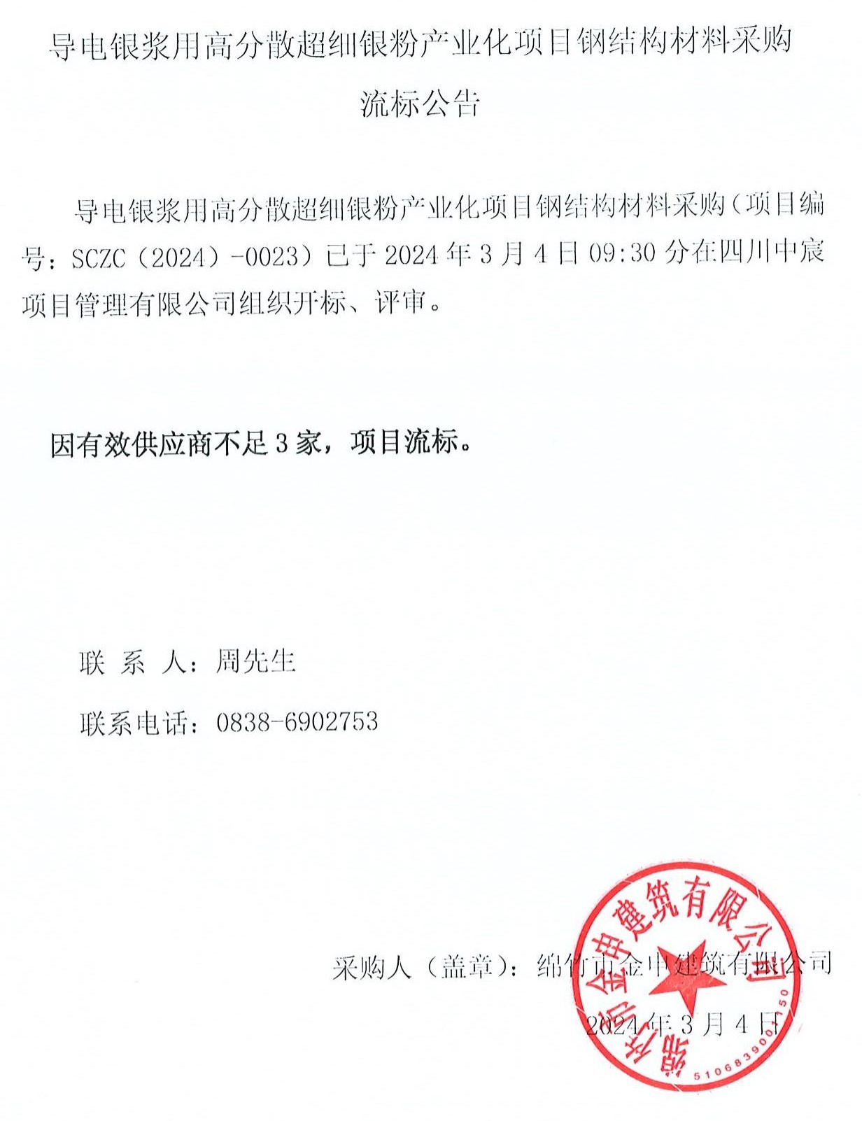 導電銀漿用高分散超細銀粉產(chǎn)業(yè)化項目鋼結構流標公告