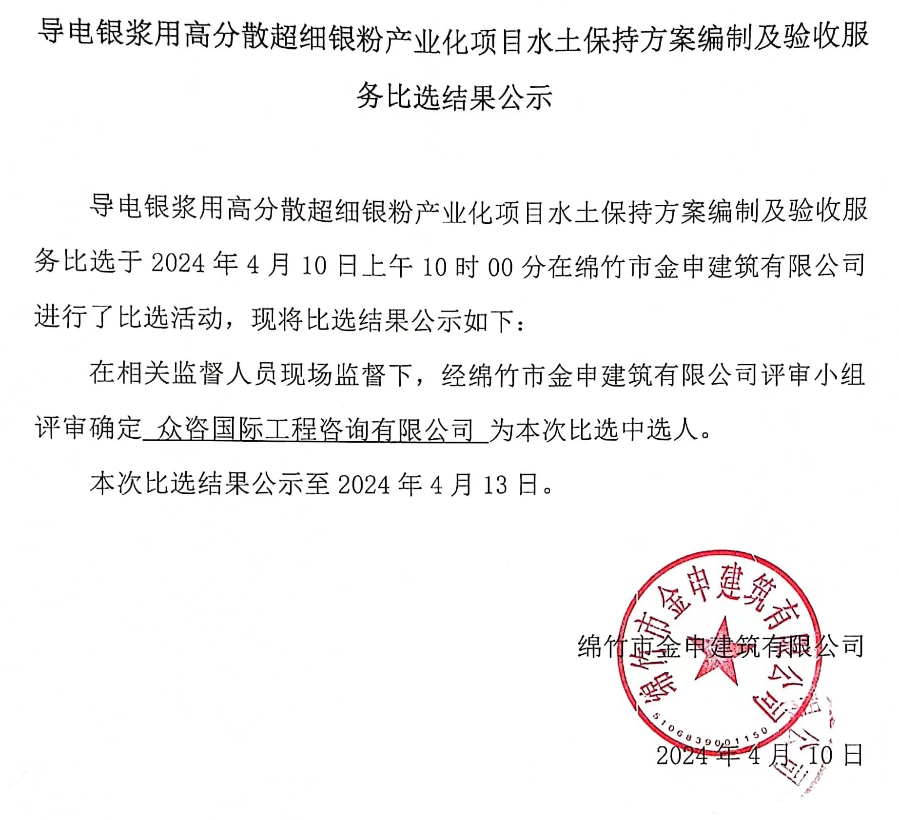 銀粉產(chǎn)業(yè)化項目水保方案編制及驗收服務(wù)比選結果公示