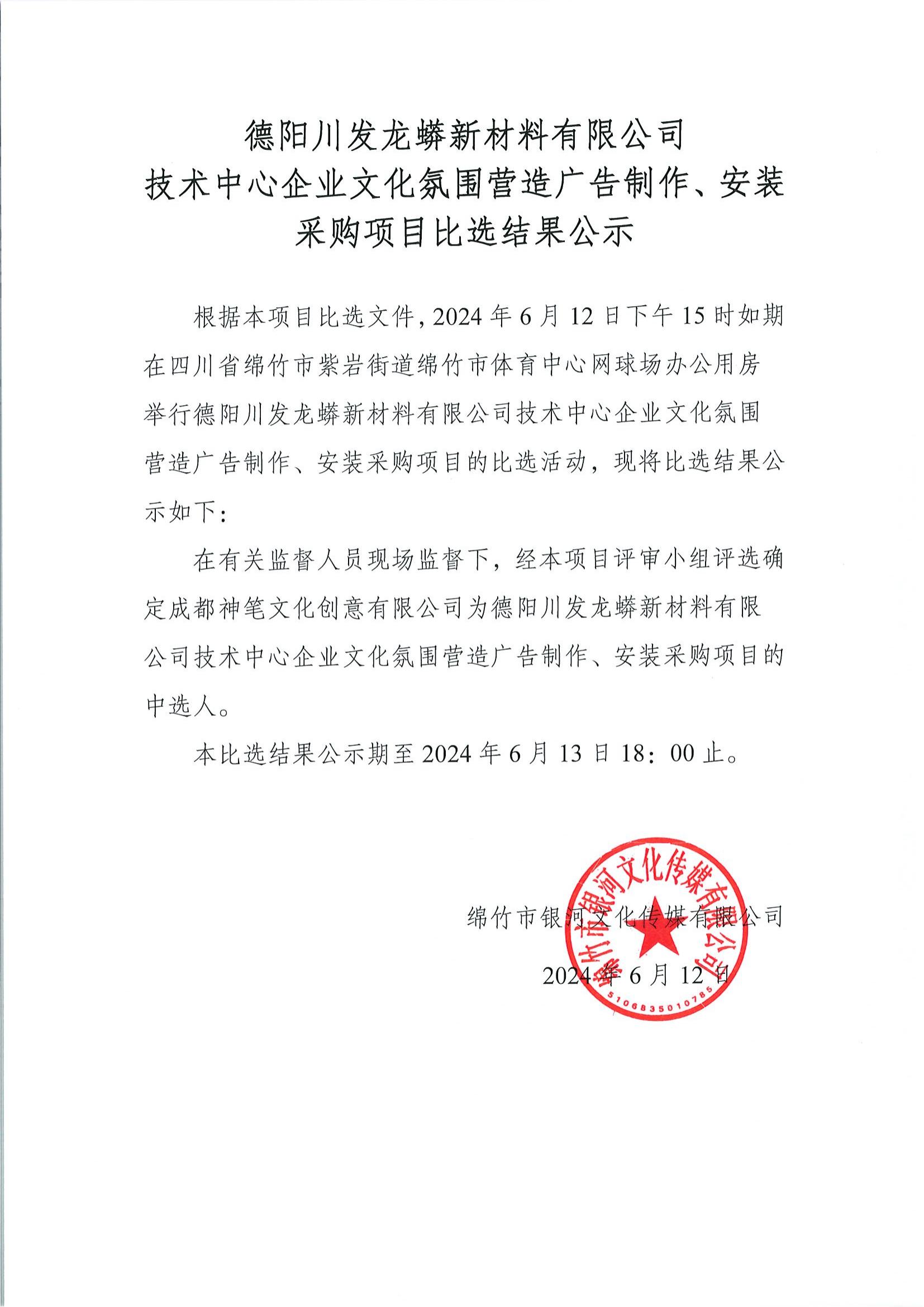 川發(fā)龍蟒新材料公司企業(yè)文化氛圍項目比選結果公示