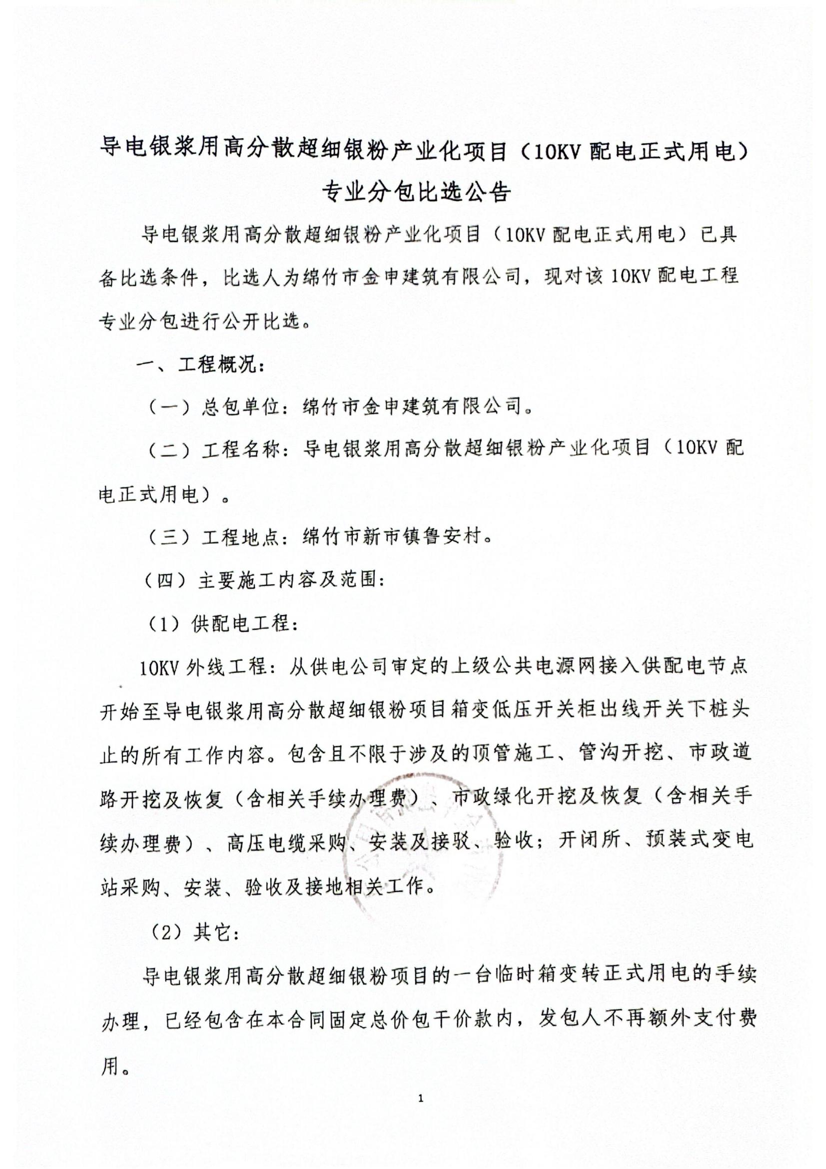 導電銀漿用高分散超細銀粉產(chǎn)業(yè)化項目專(zhuān)業(yè)分包比選公告
