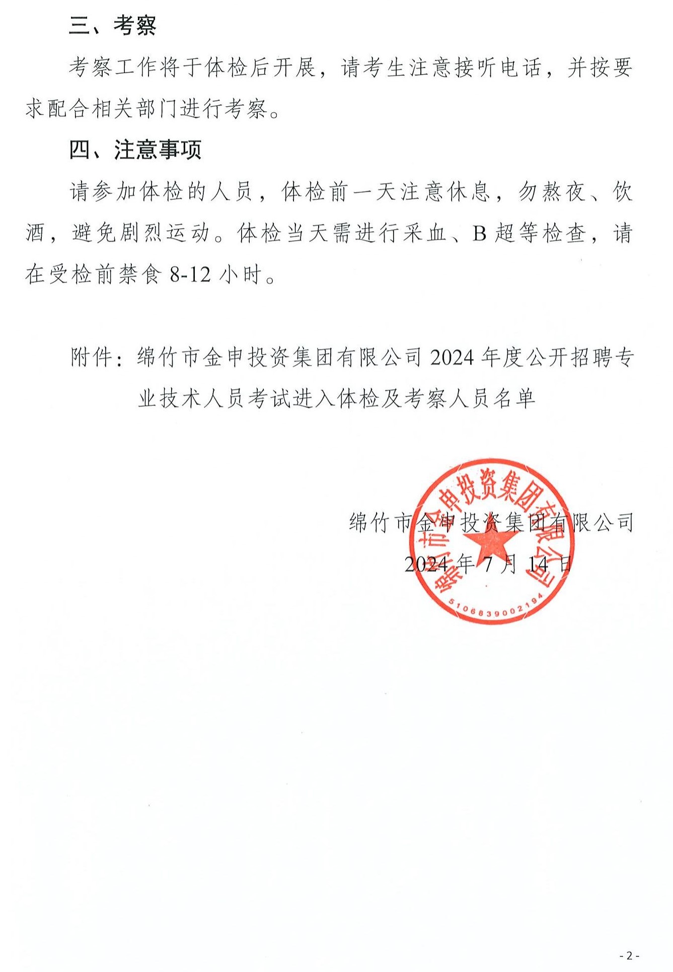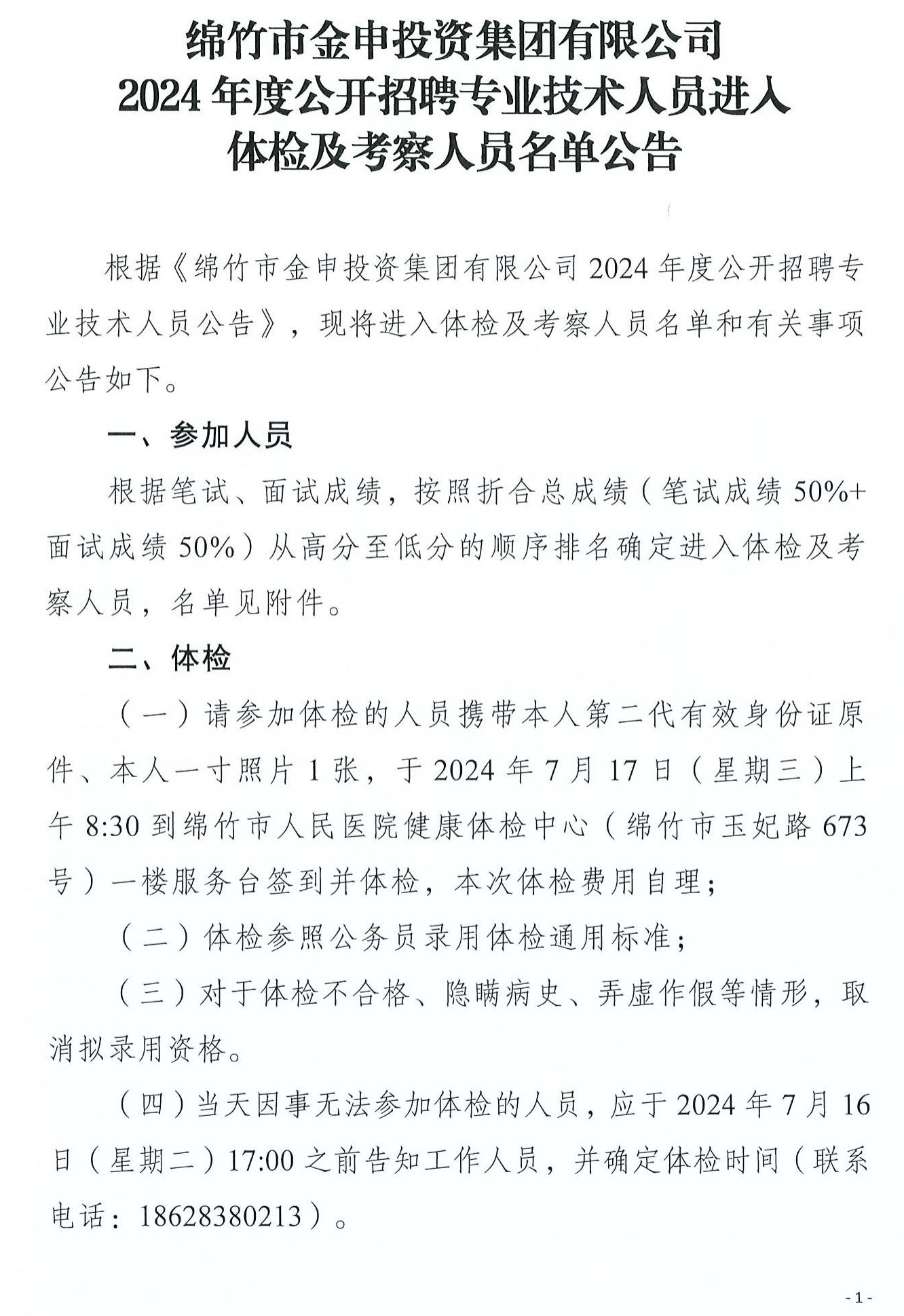 金申集團2024年公開(kāi)招聘技術(shù)人員進(jìn)入體檢及考察名單公布
