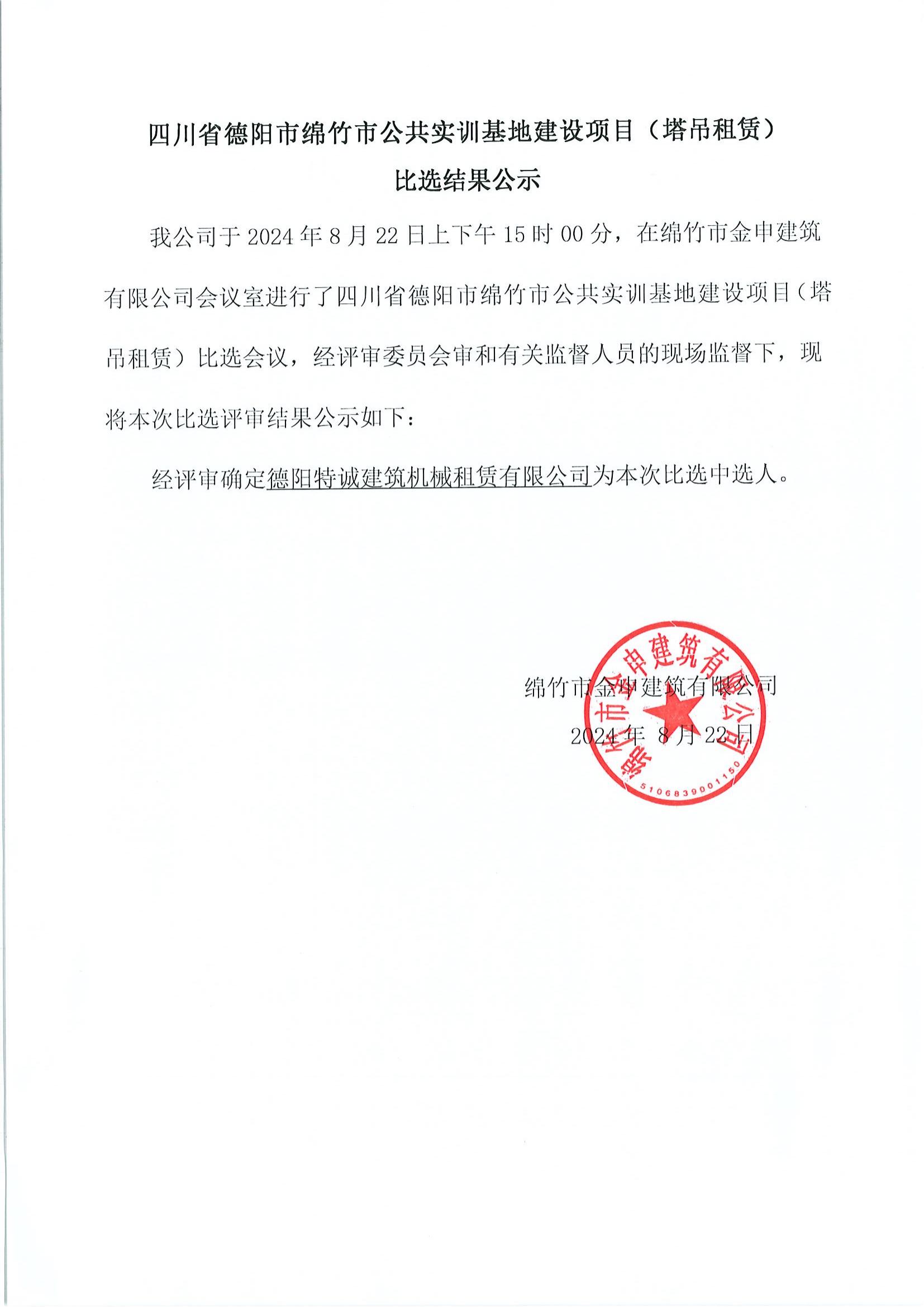 實(shí)訓基地項目塔吊租賃比選結果公示