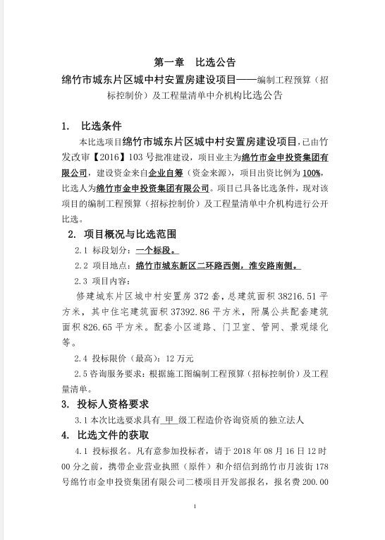 市城東新區城中村安置房項目比選公告