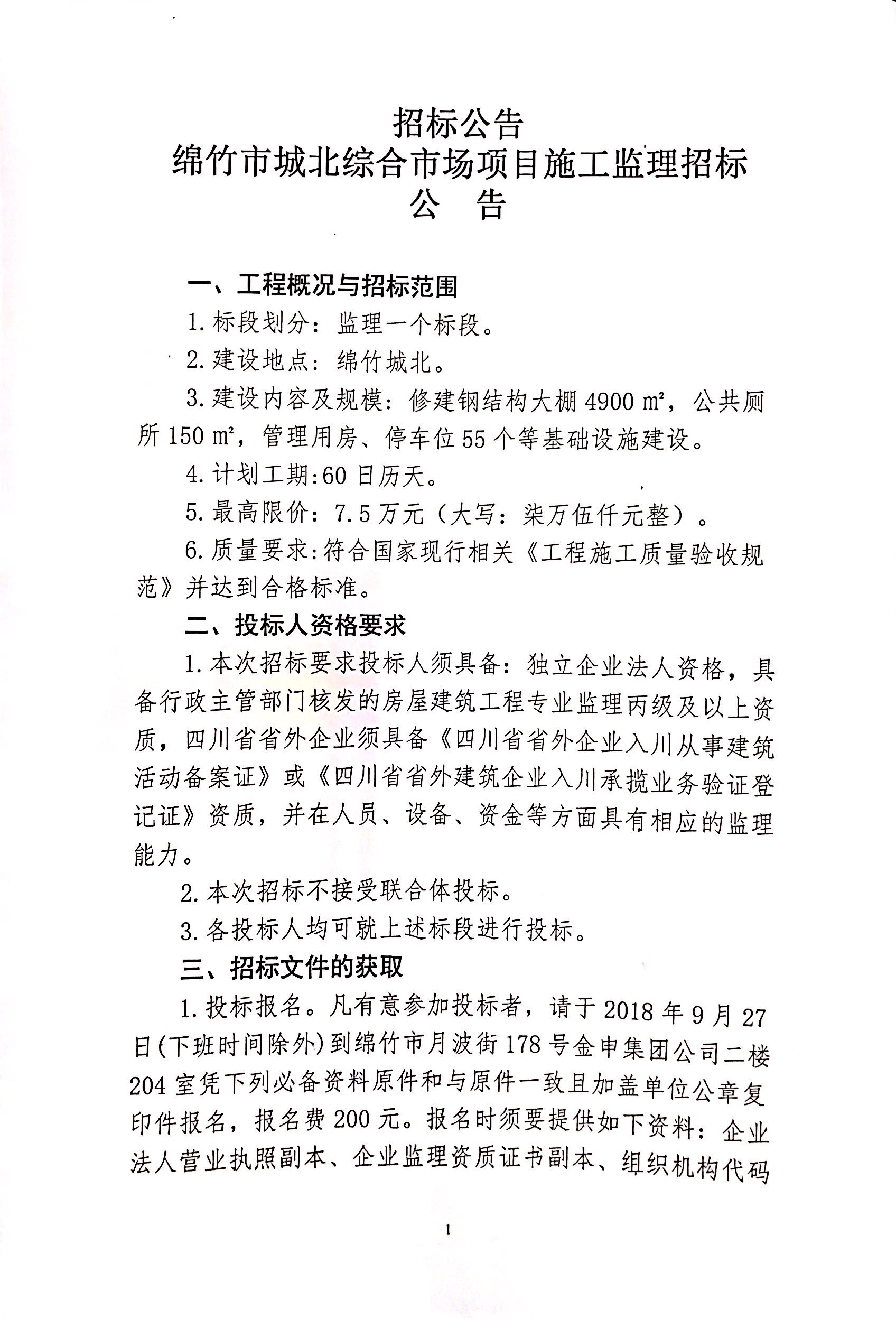 市城北綜合市場(chǎng)項目施工監理招標公告