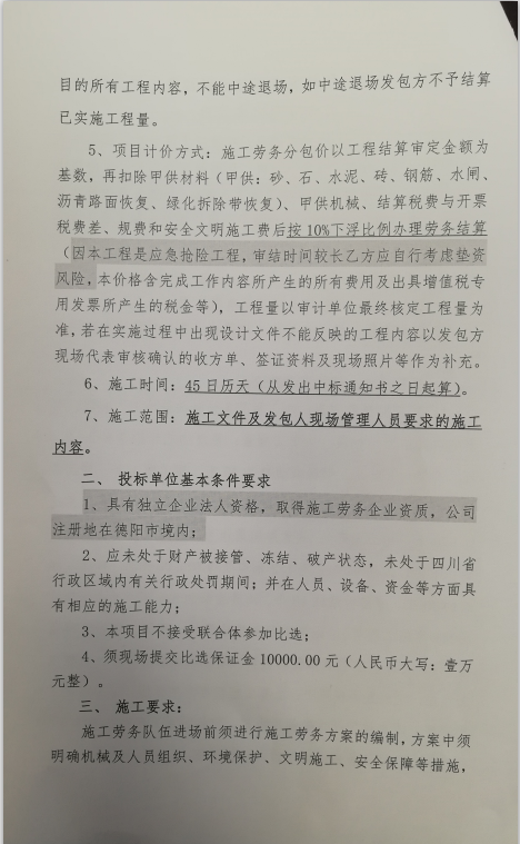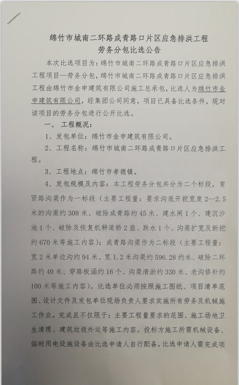 市城南二環(huán)路成青路口片區應急排洪工程勞務(wù)分包比選公告