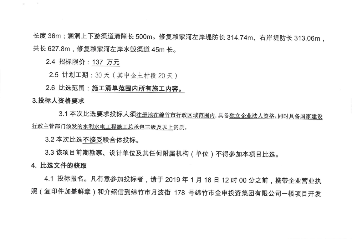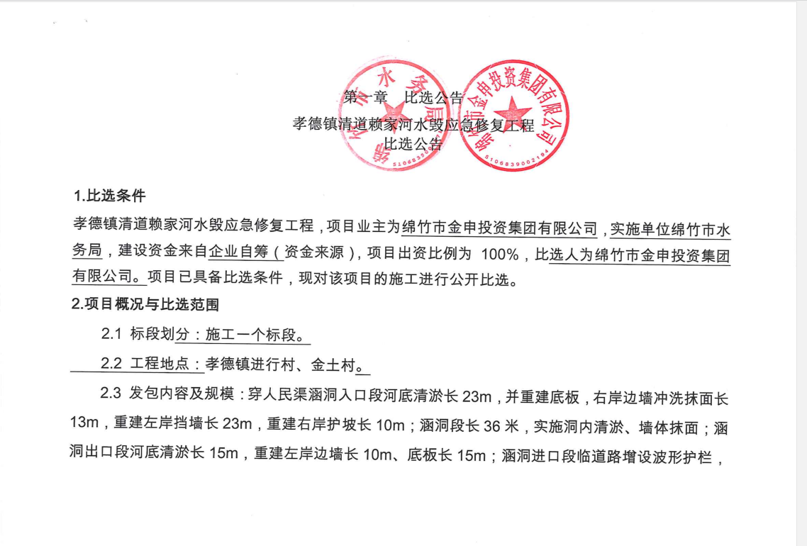 孝德鎮清道賴(lài)家河水毀應急修復工程比選公告