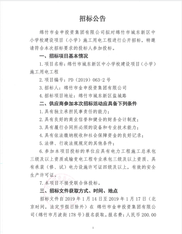 市城東小學(xué)建設項目施工用電工程招標公告