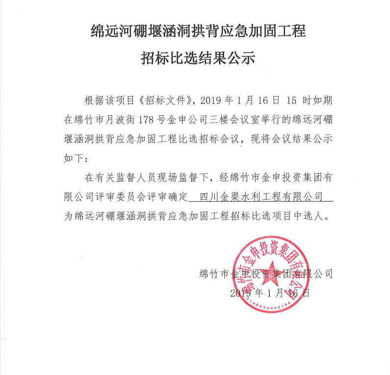 綿遠河硼堰涵洞拱背應急加固工程比選結果公示