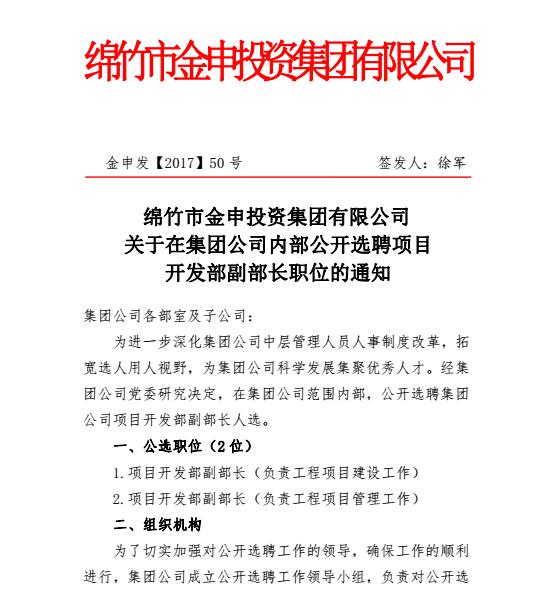 金申集團內部公開(kāi)選聘項目開(kāi)發(fā)部副部長(cháng)職位的通知