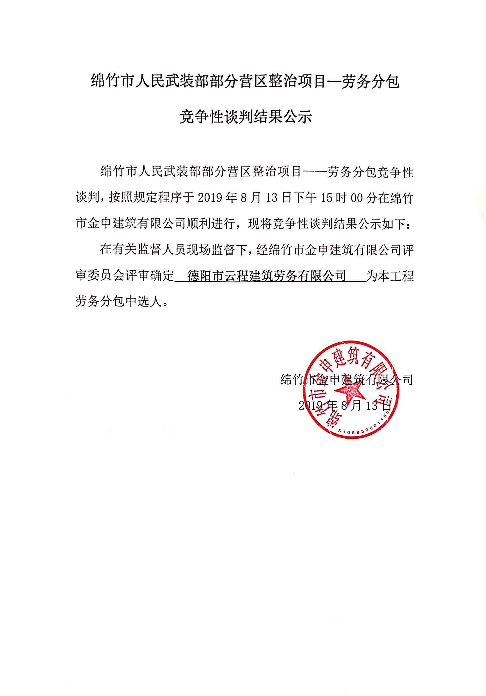 市武裝部部分營(yíng)區整治項目—勞務(wù)分包競爭性談判結果公示