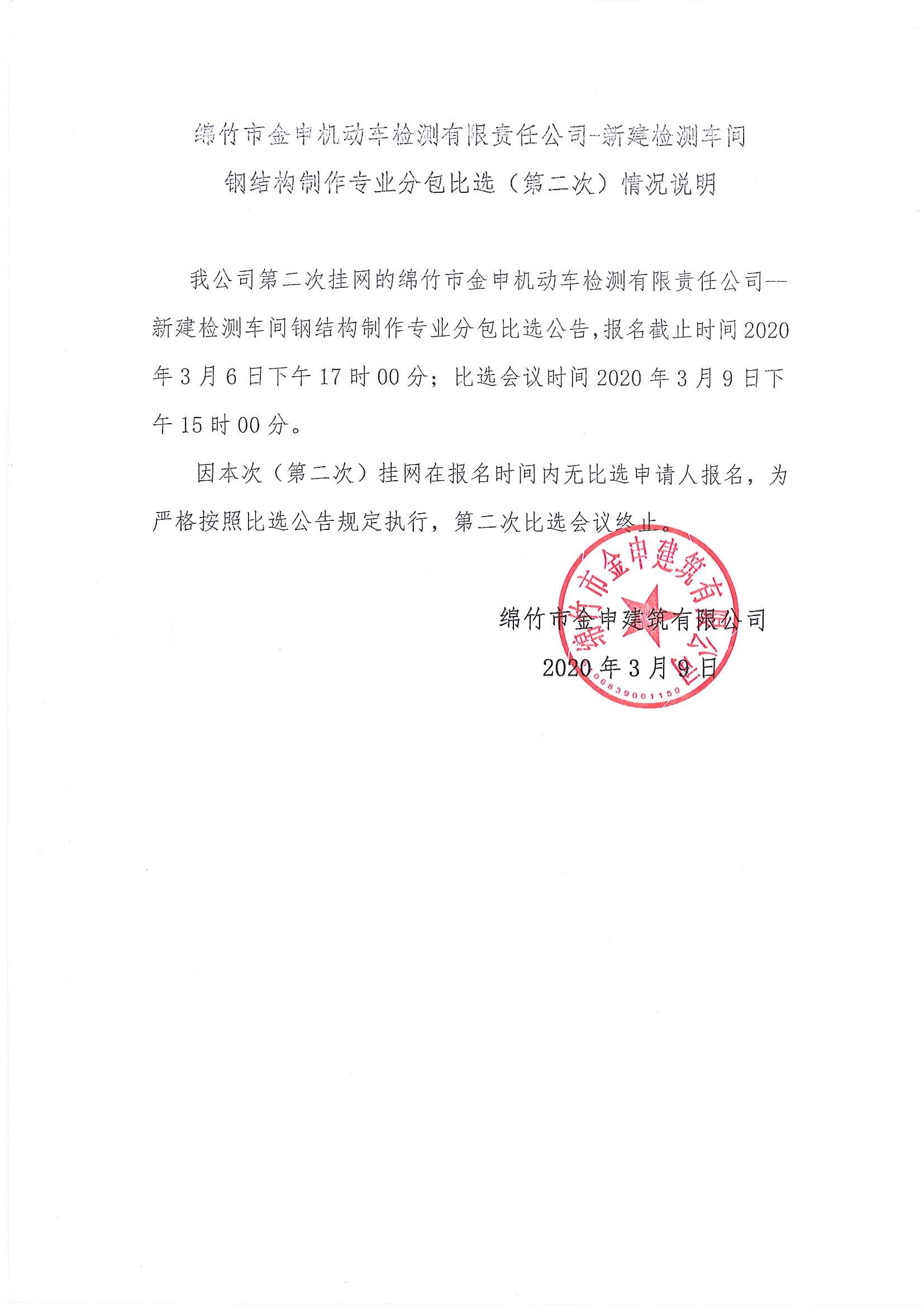 新建檢測車(chē)間鋼結構制作專(zhuān)業(yè)分包比選(第二次)情況說(shuō)明