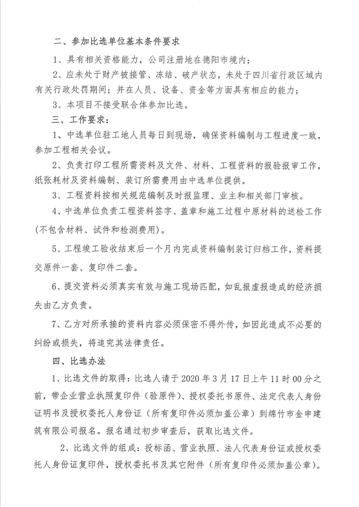 工程資料編制服務(wù)第三方中介機構比選邀請公告