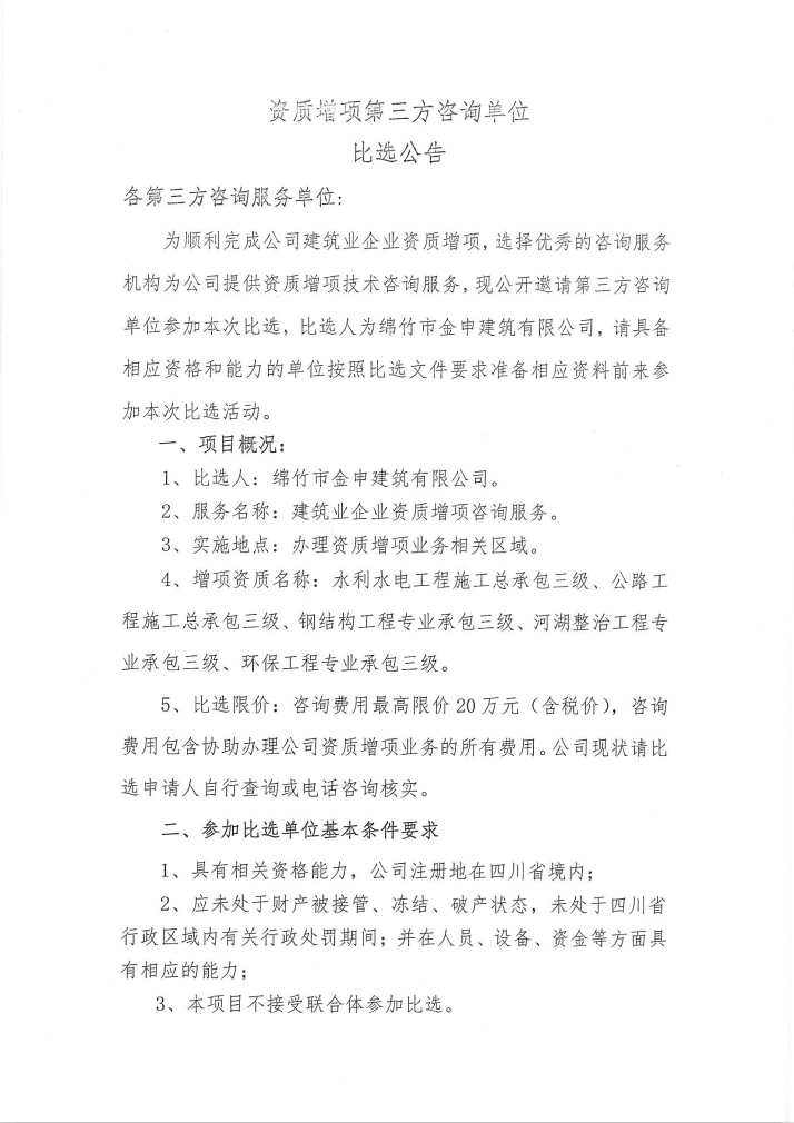 資質(zhì)增項第三方咨詢(xún)單位比選公告