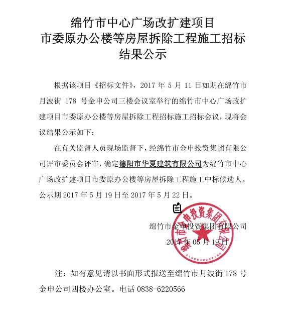 市委原辦公樓等房屋拆除工程施工招標結果公示