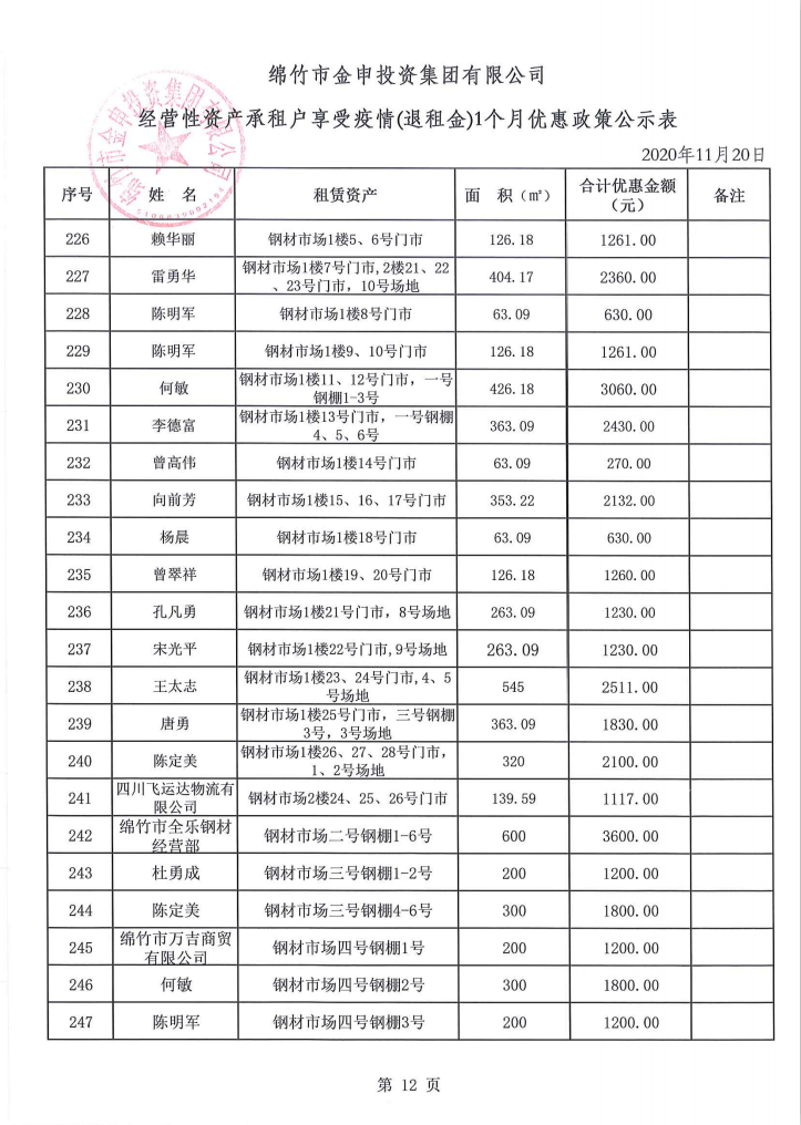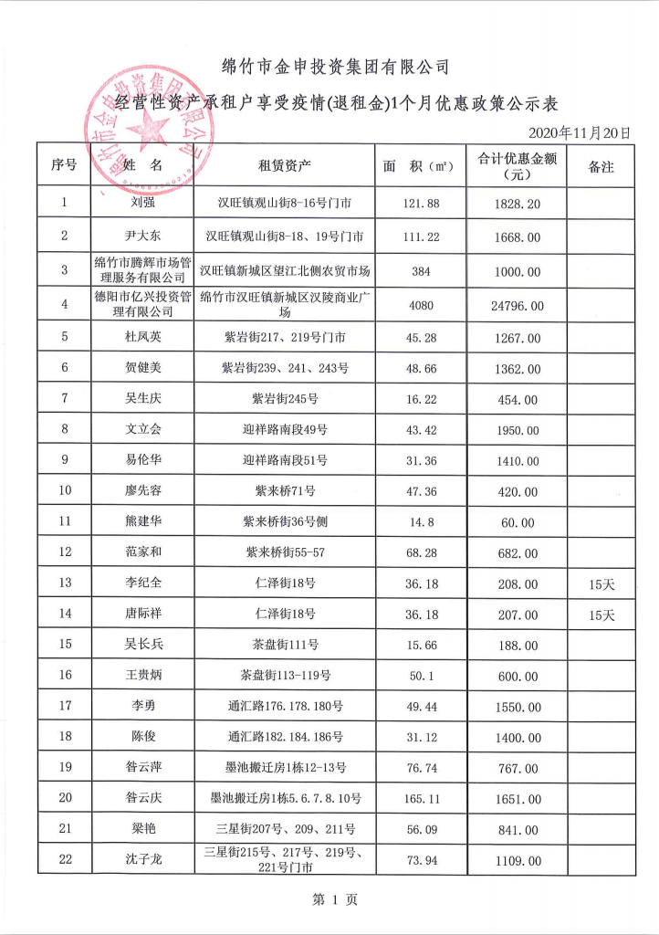 經(jīng)營(yíng)性資產(chǎn)承租戶(hù)享受疫情(退租金)一個(gè)月優(yōu)惠政策公示