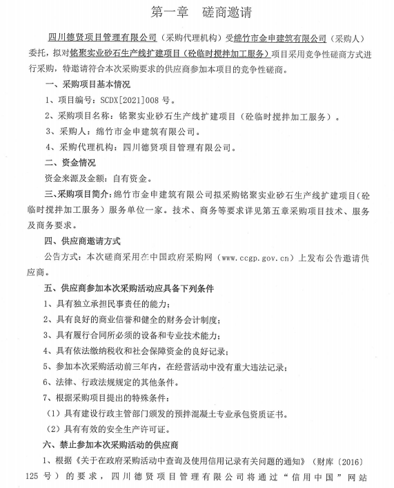 銘聚實(shí)業(yè)砂石生產(chǎn)線(xiàn)擴建項目砼臨時(shí)攪拌加工服務(wù)磋商邀請