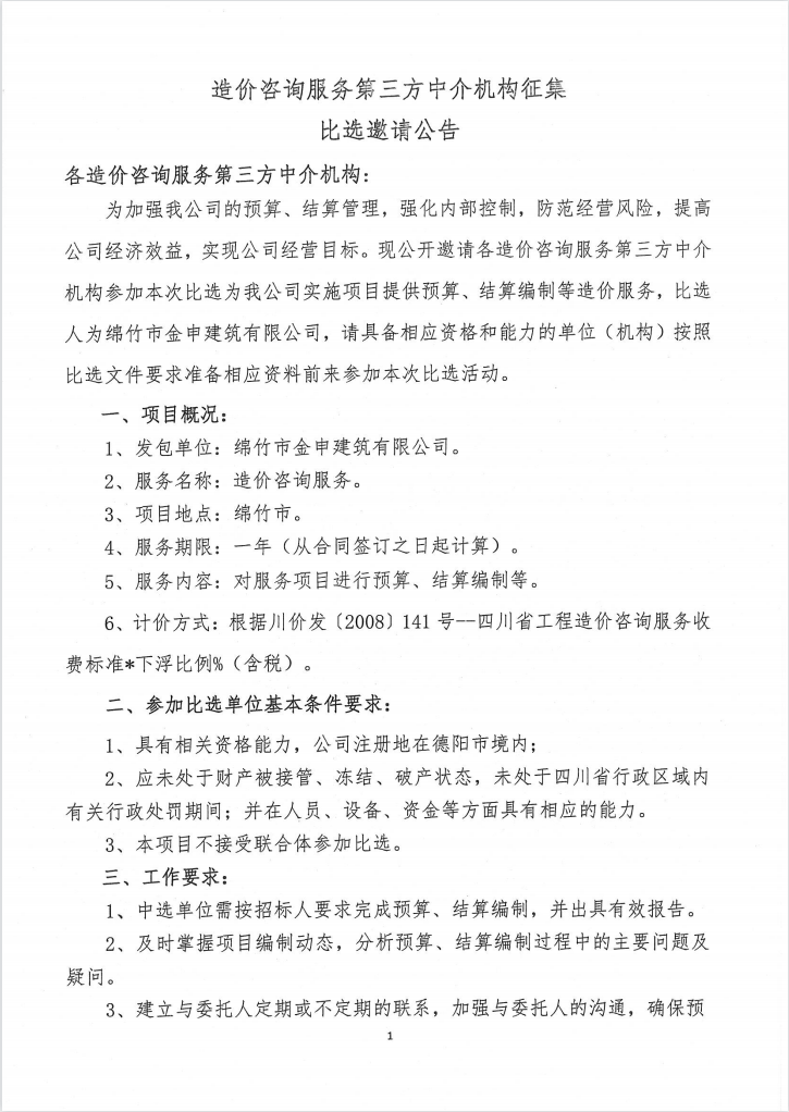 造價(jià)咨詢(xún)服務(wù)第三方中介機構征集比選邀請公告