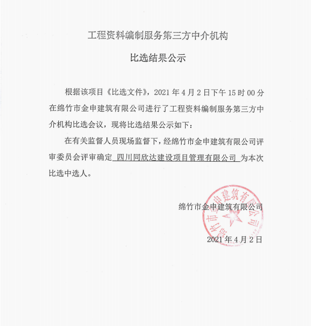 工程資料編制服務(wù)第三方中介機構比選結果公示