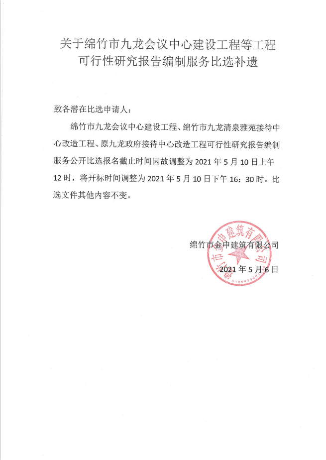 關(guān)于九龍工程可研報告編制服務(wù)比選補遺公告