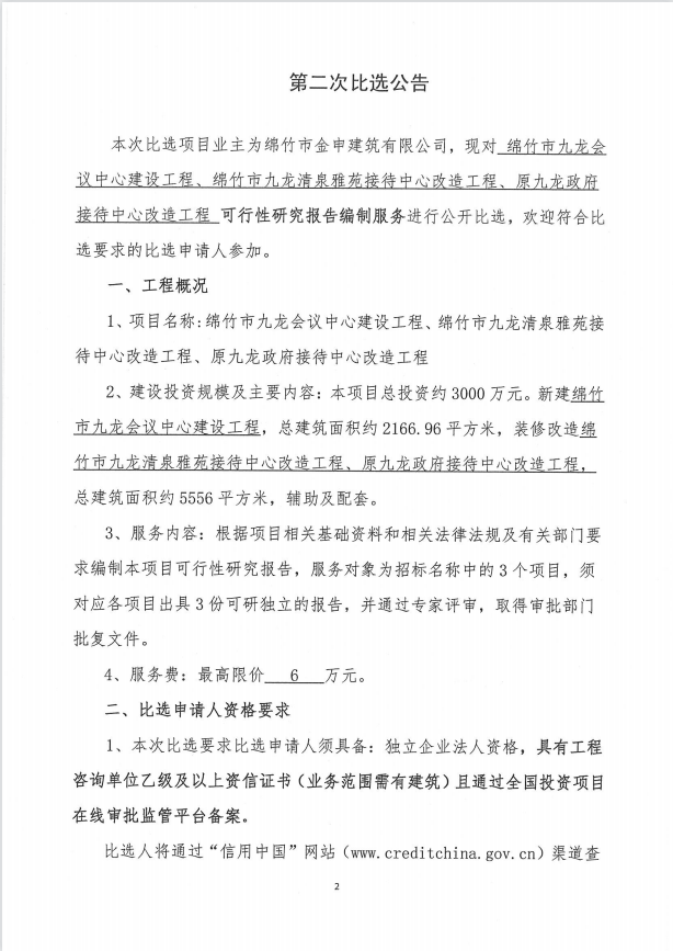 九龍系列工程可行性研究報告編制服務(wù)二次比選公告