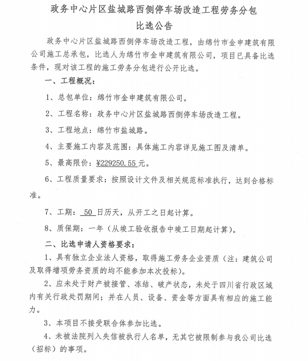 政務(wù)中心片區鹽城路西側停車(chē)場(chǎng)改造工程比選公告