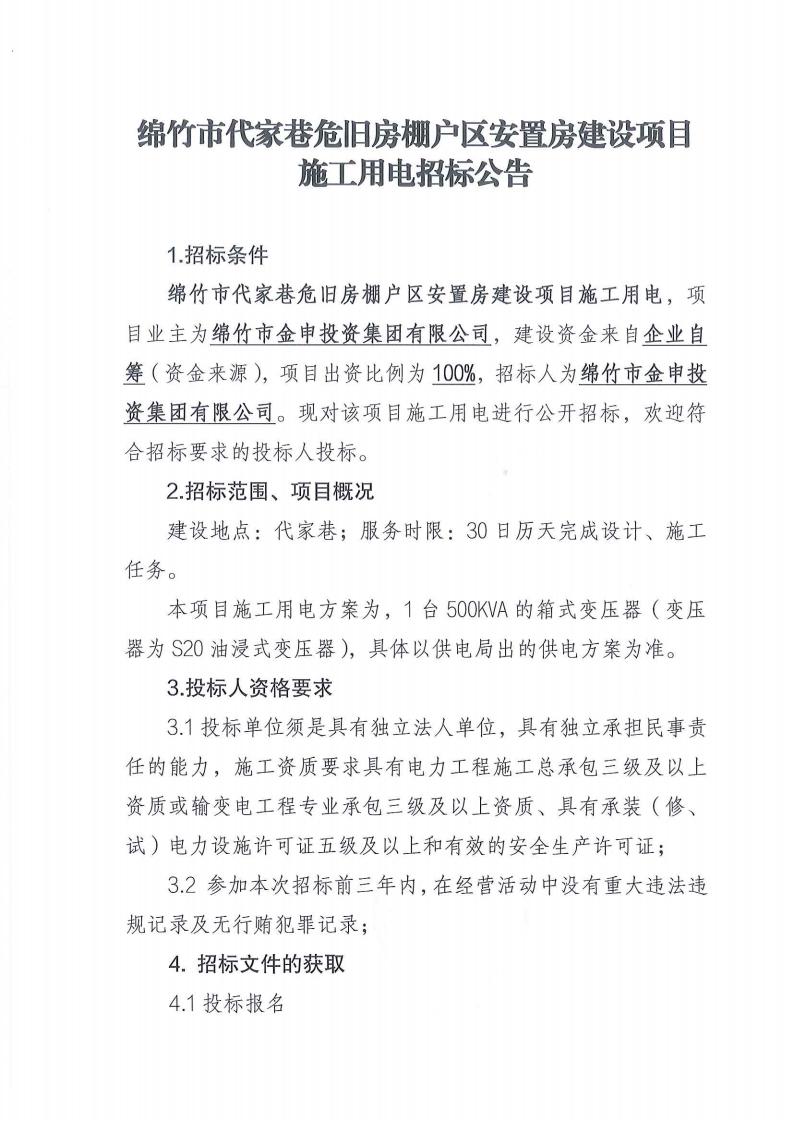 代家巷危舊房棚戶(hù)區安置房建設項目施工用電招標公告
