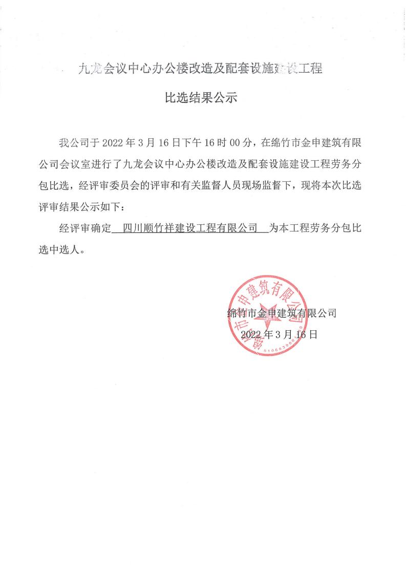 九龍會(huì )議中心辦公樓改造及配套設施建設工程比選結果公示