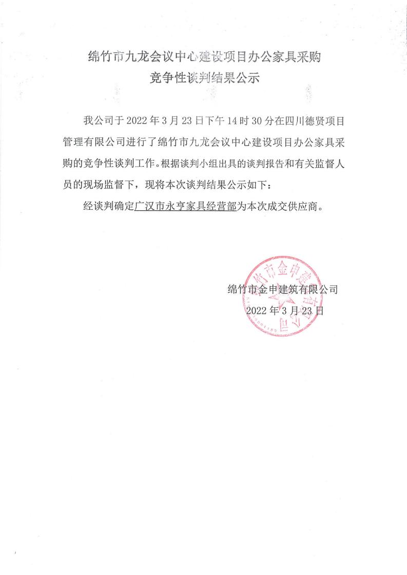 九龍會(huì )議中心建設項目辦公家具采購競爭性談判結果公示