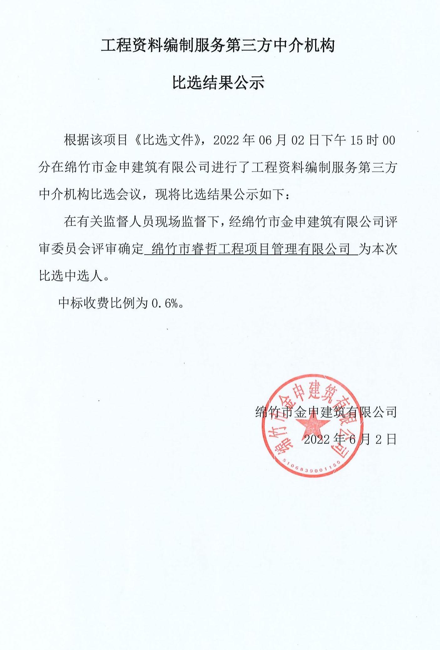 工程資料編制服務(wù)第三方中介機構比選結果公示