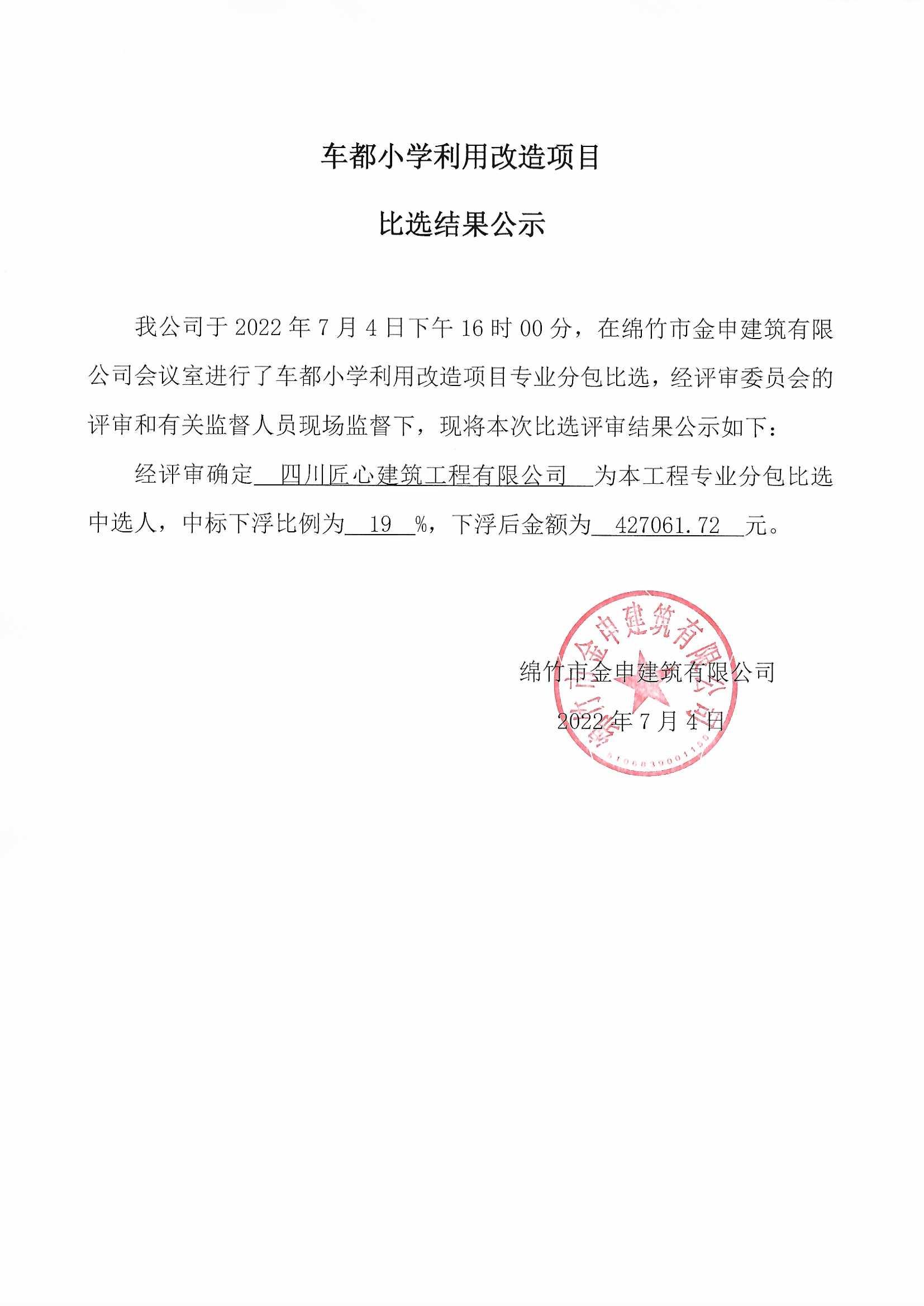 車(chē)都小學(xué)利用改造項目專(zhuān)業(yè)分包比選結果公示