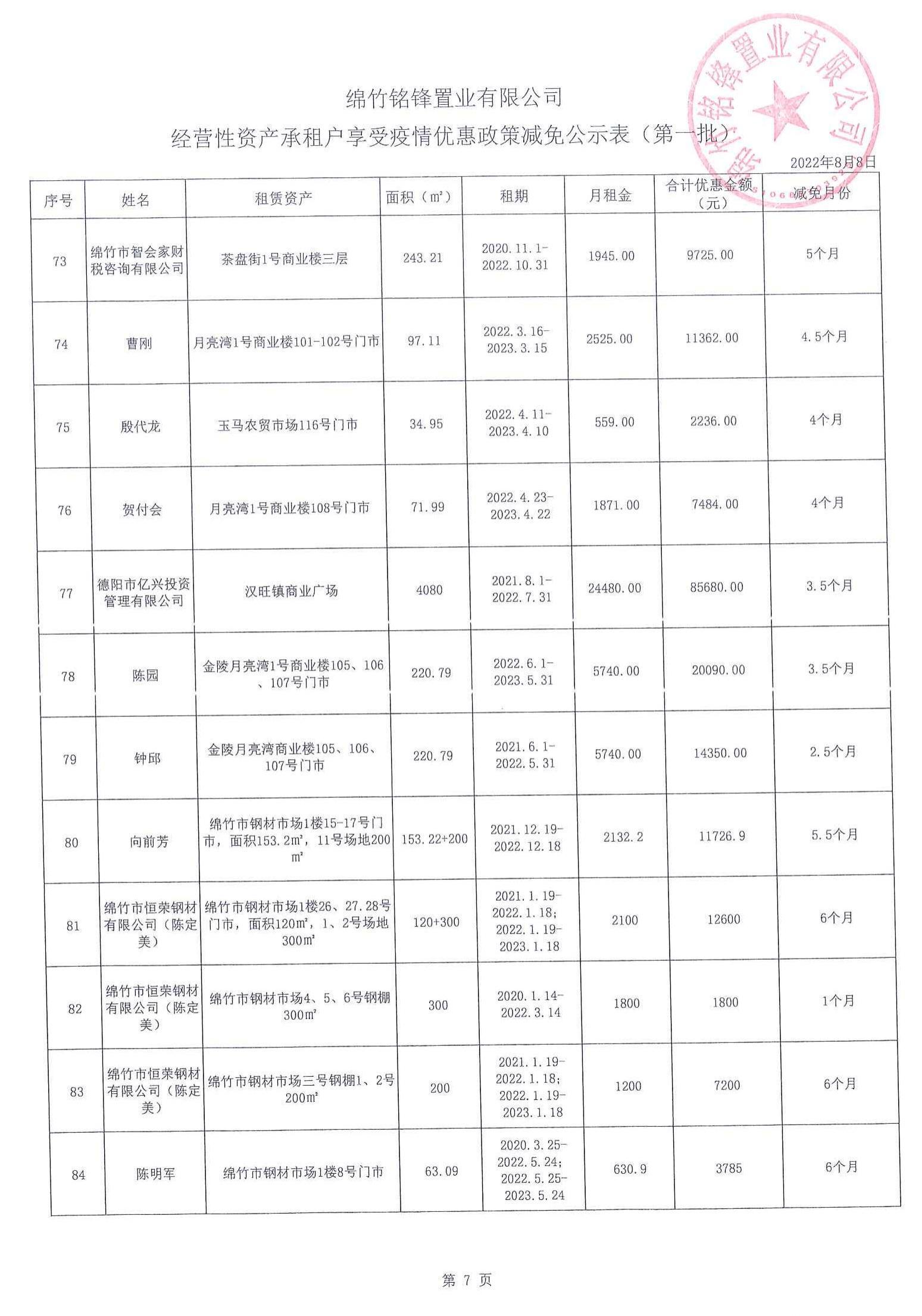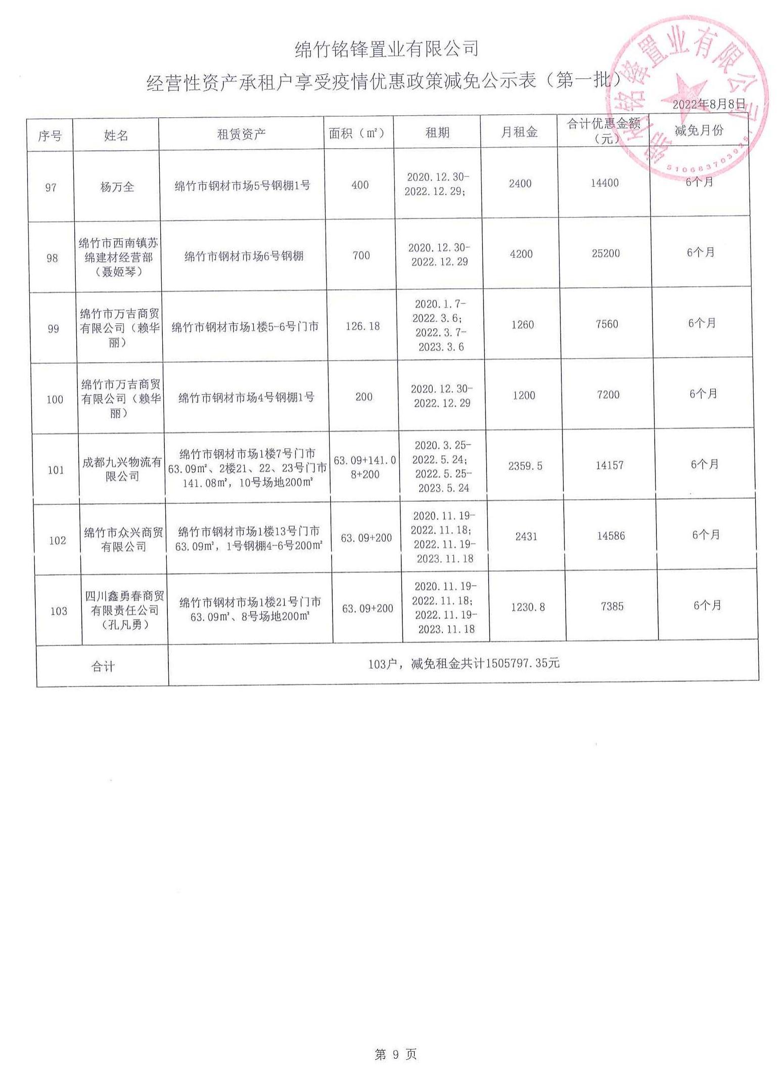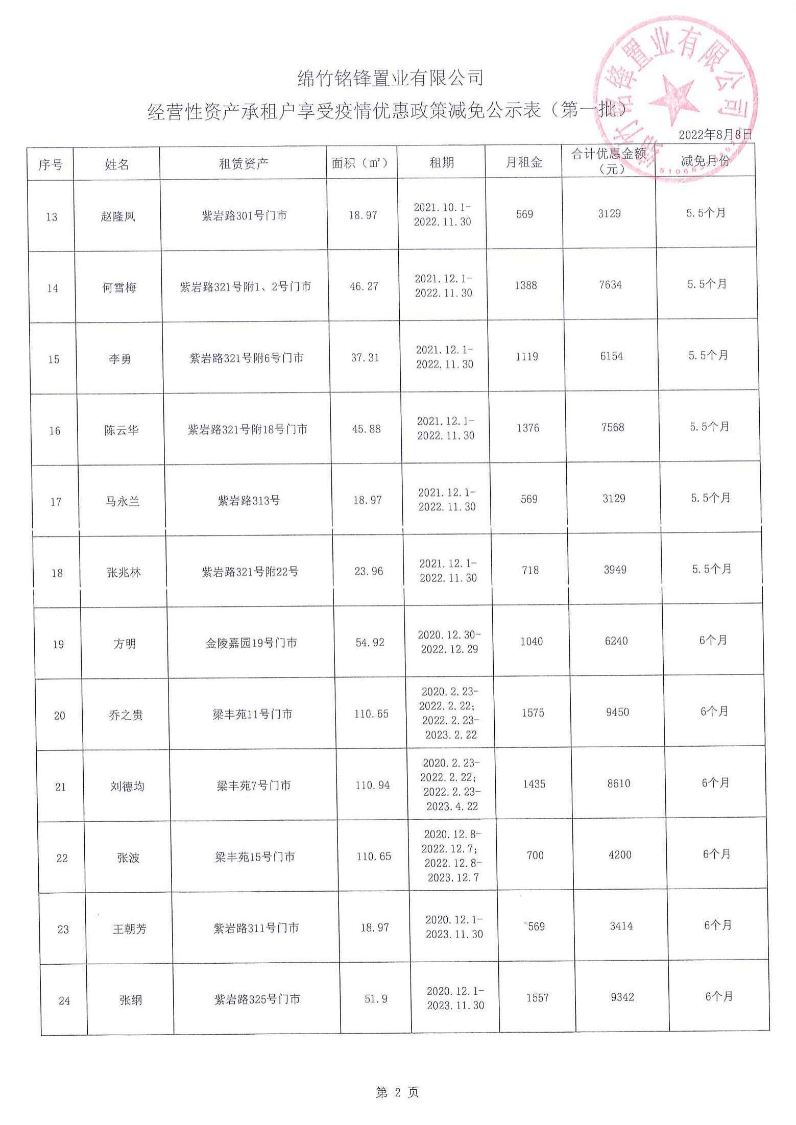 經(jīng)營(yíng)性資產(chǎn)承租戶(hù)享受疫情優(yōu)惠政策減免公示表(第一批)