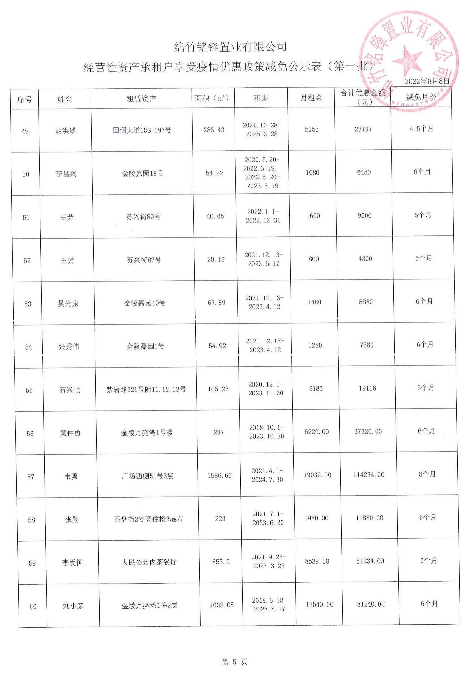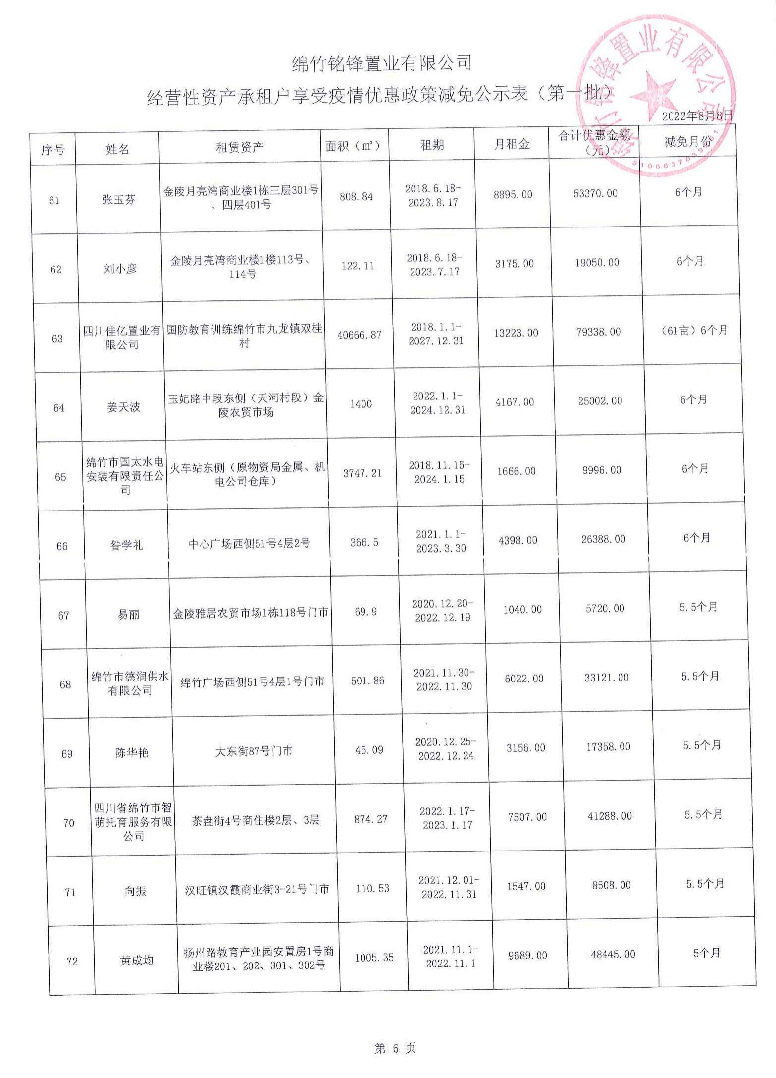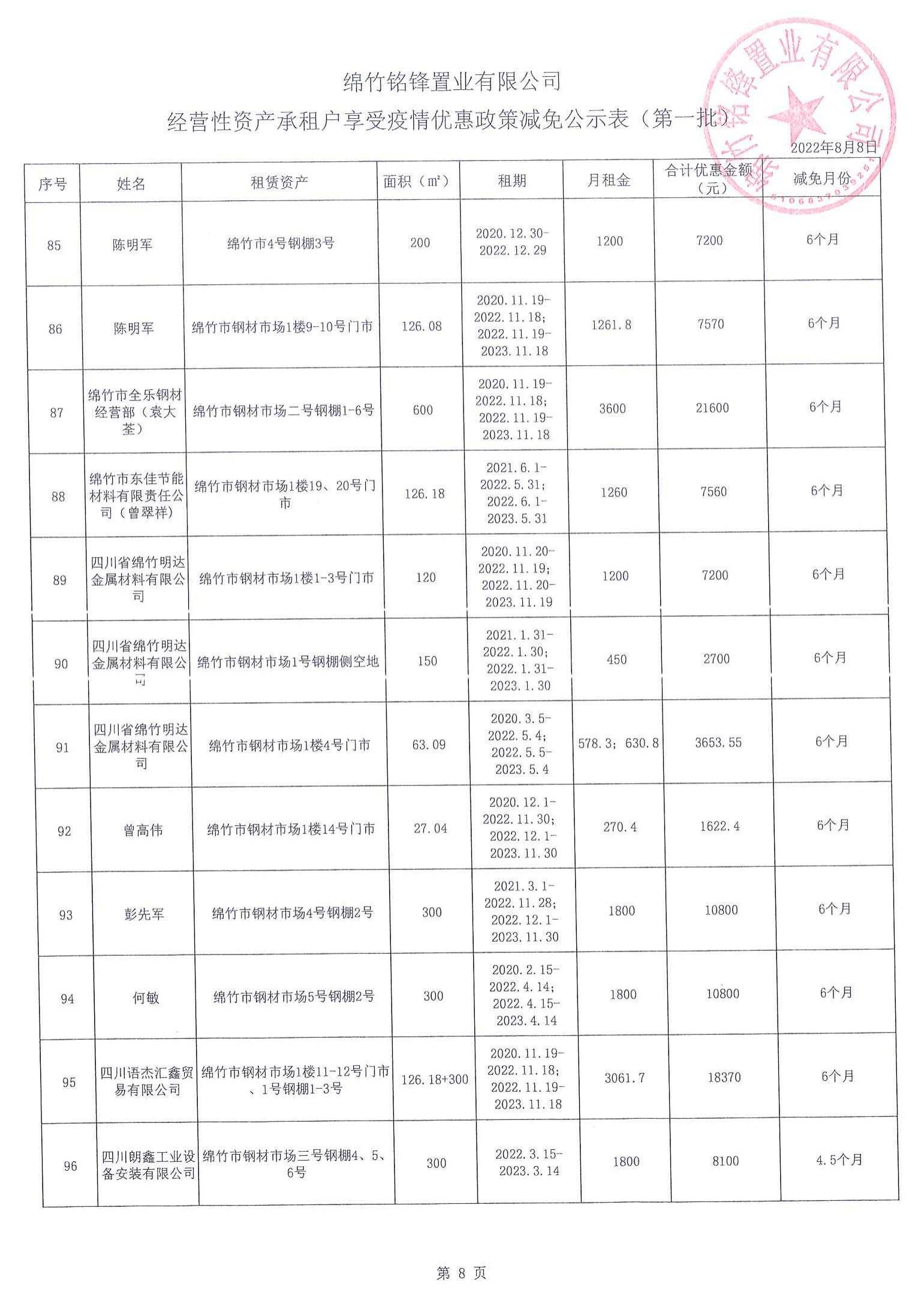 經(jīng)營(yíng)性資產(chǎn)承租戶(hù)享受疫情優(yōu)惠政策減免公示表(第一批)