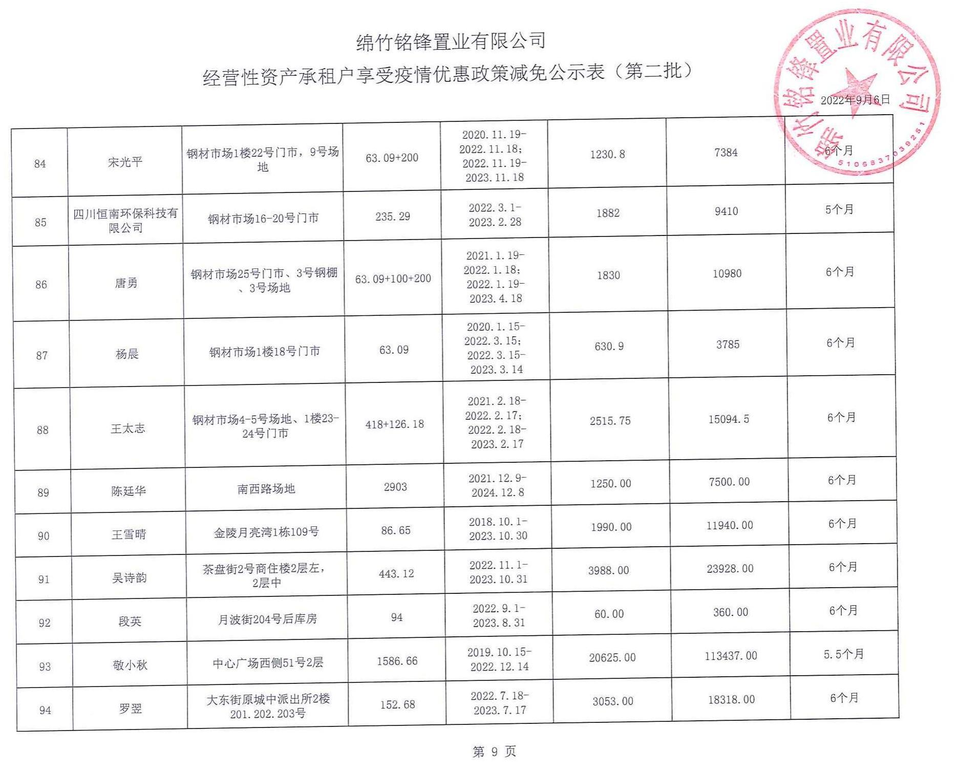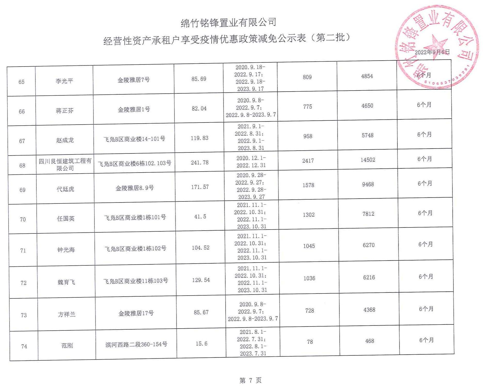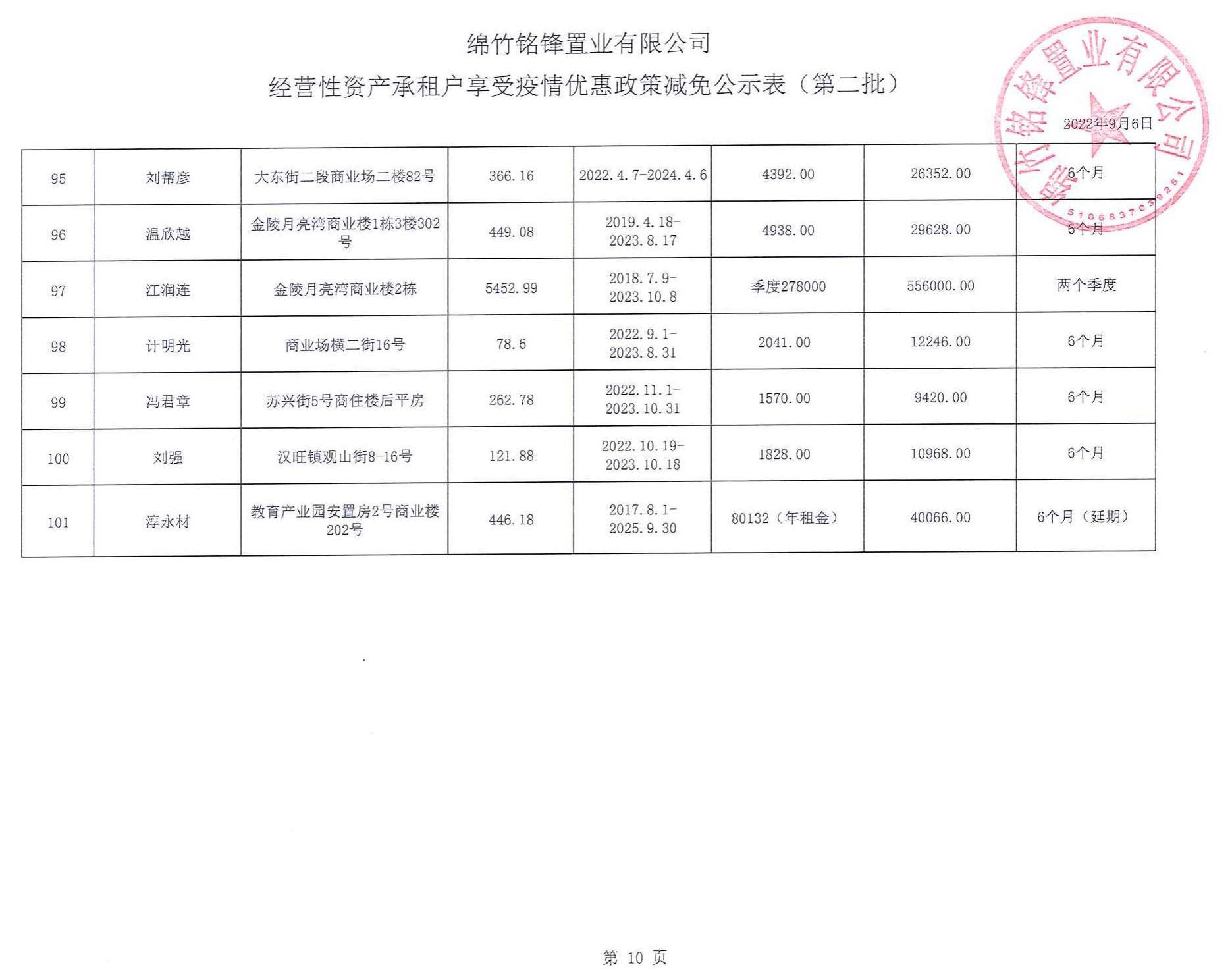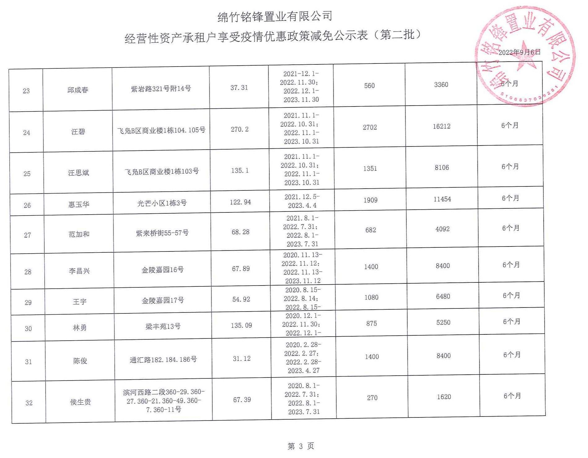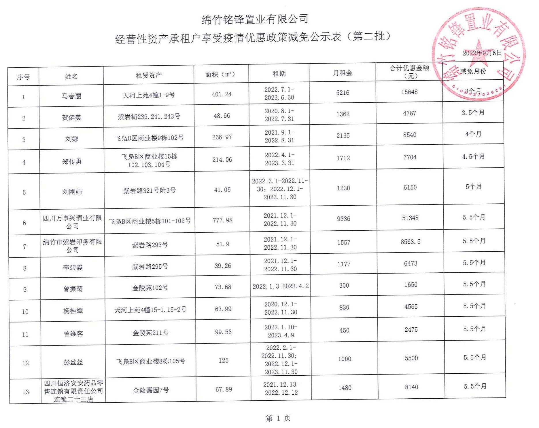 經(jīng)營(yíng)性資產(chǎn)承租戶(hù)享受疫情優(yōu)惠政策減免公示表(第二批)